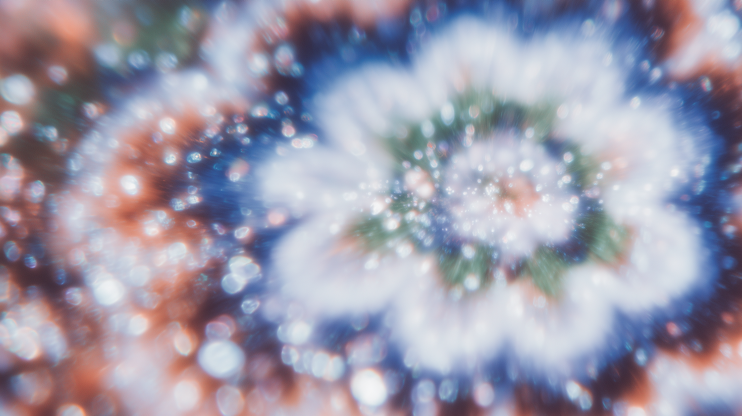 A vibrant abstract scene of a blurred pattern with vivid colors and shimmering light effects creating a dreamlike ambiance.