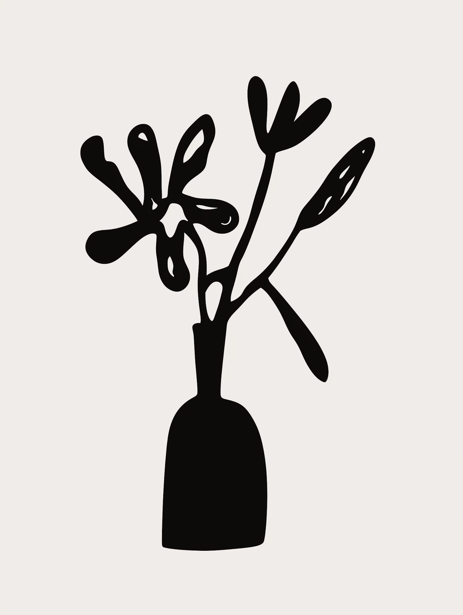 Minimalist black silhouette of a vase with abstract floral stems on a light beige background. Perfect for modern, artistic decor.