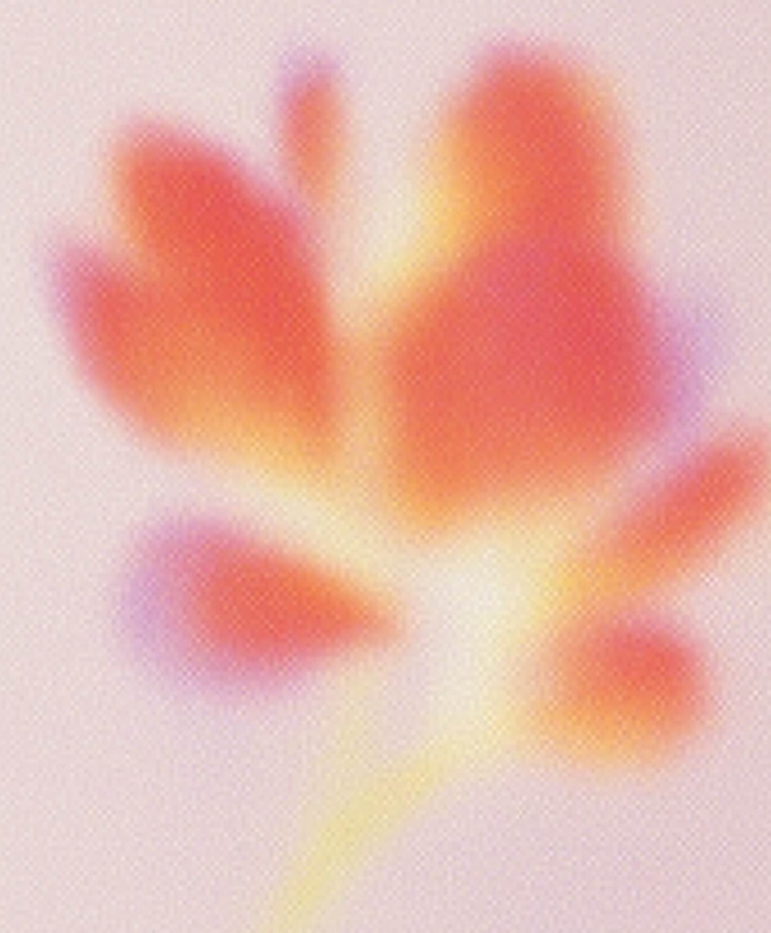 Abstract depiction of a glowing flower with vibrant red, orange, and yellow hues on a soft, neutral background.