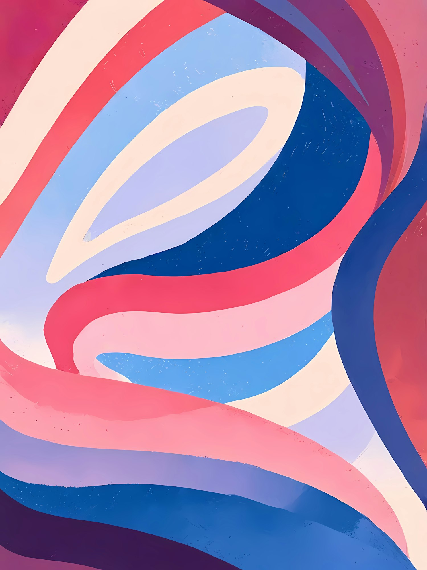 Colorful abstract illustration with flowing wavy lines in pink, blue, and cream, creating a dynamic and fluid visual pattern.