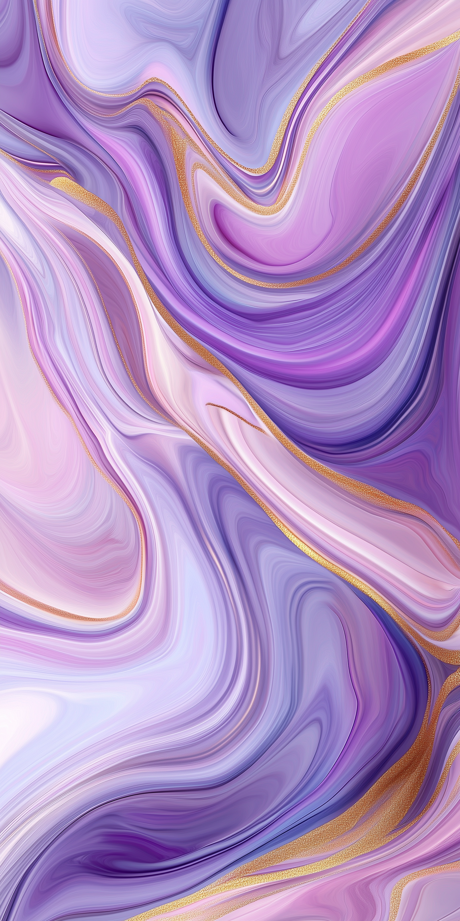 Abstract swirls of purple, pink, and gold create a luxurious, fluid design with marbled textures and shimmering accents.