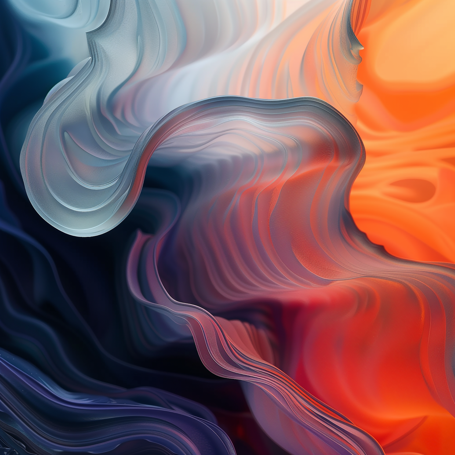 Abstract fluid art with flowing wave-like forms in cool blues and warm oranges, creating a dynamic and immersive visual experience.