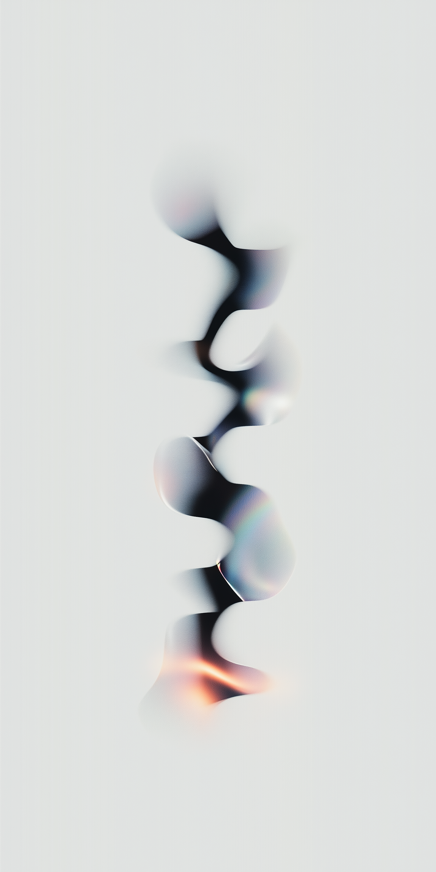Abstract fluid form with gradient colors on a neutral gray background, featuring iridescent hues and blurred edges for a dynamic effect.