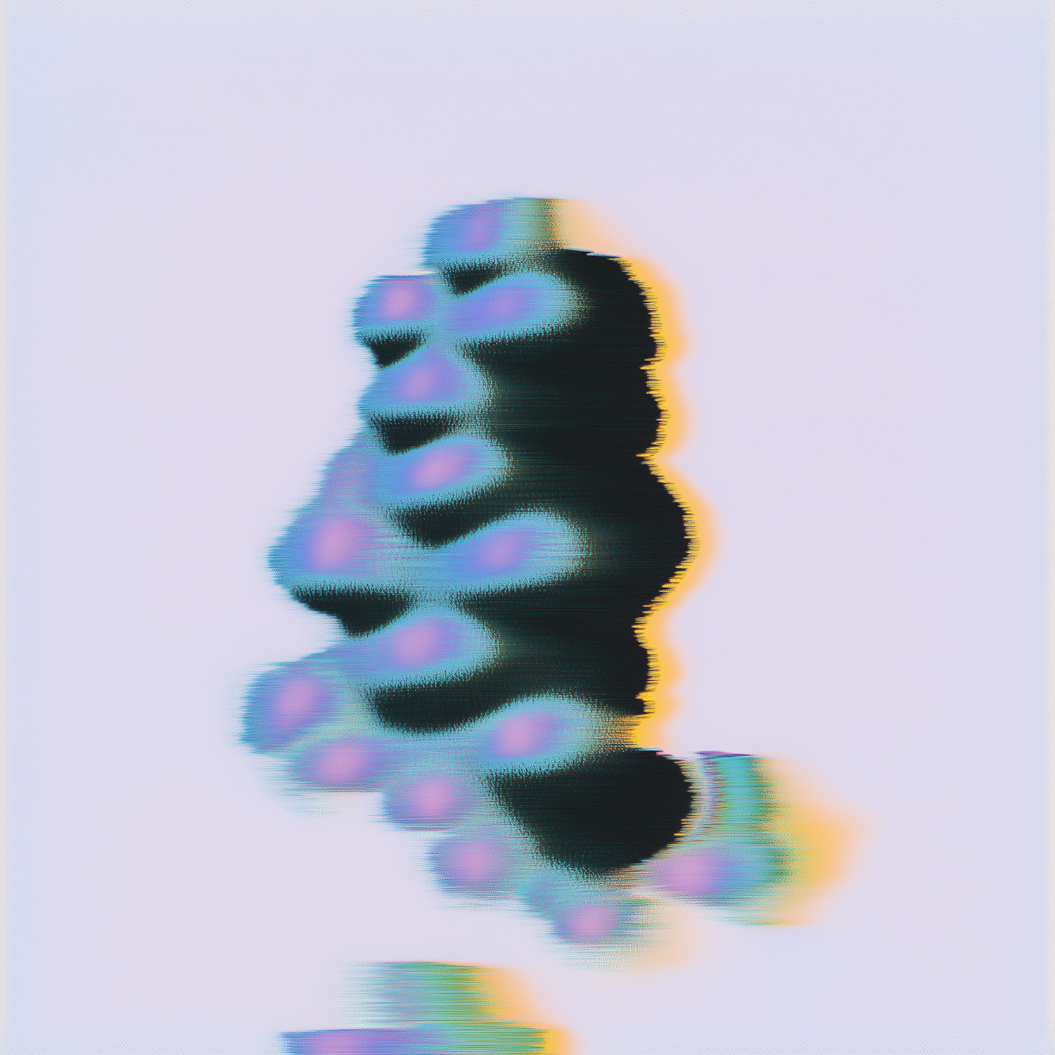 Abstract digital art with wavy, blurred shapes in purple and blue hues on a light background, creating a dynamic and fluid effect.
