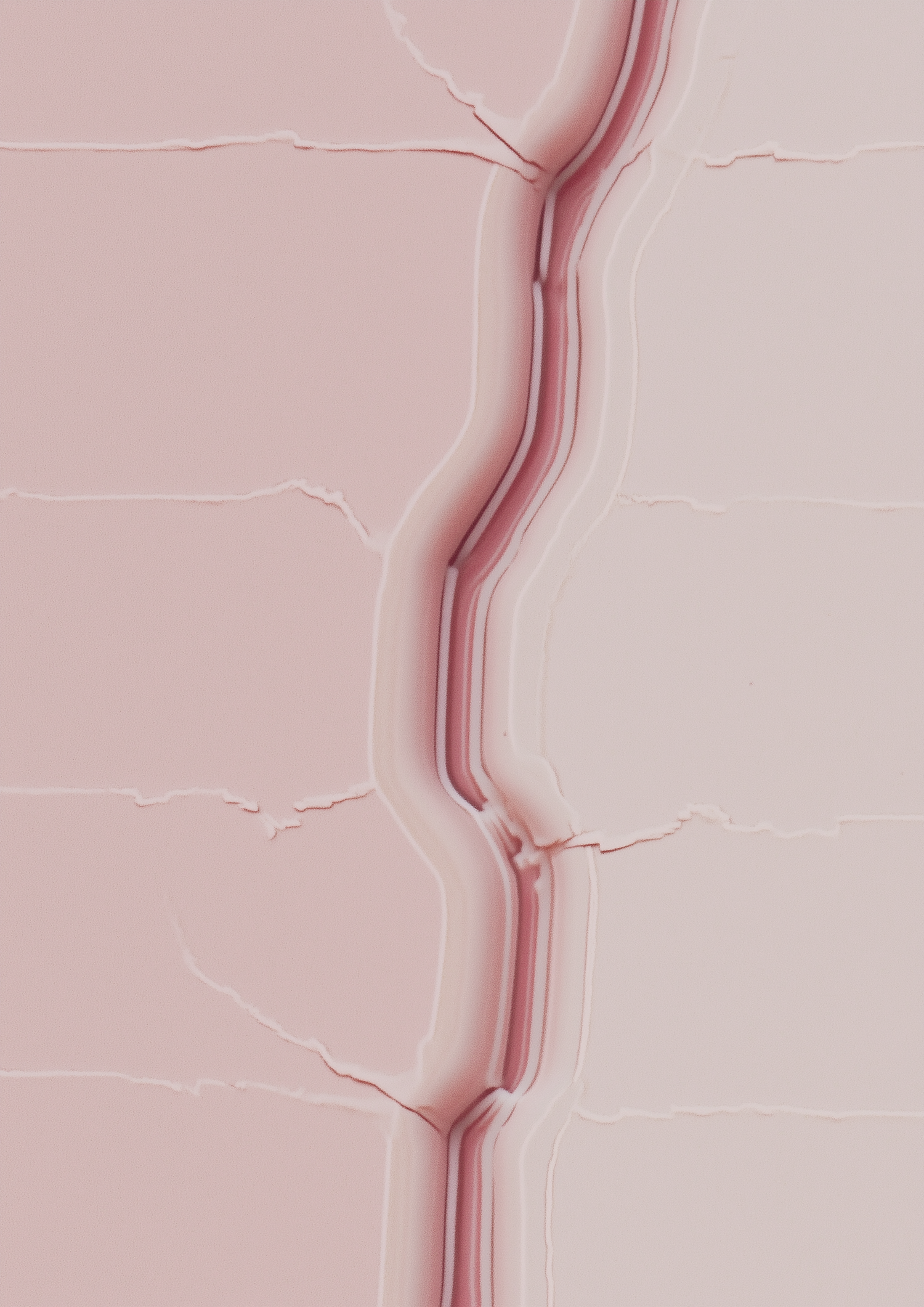 Abstract pink and cream composition with layered textures and a central jagged line resembling a geological crack.