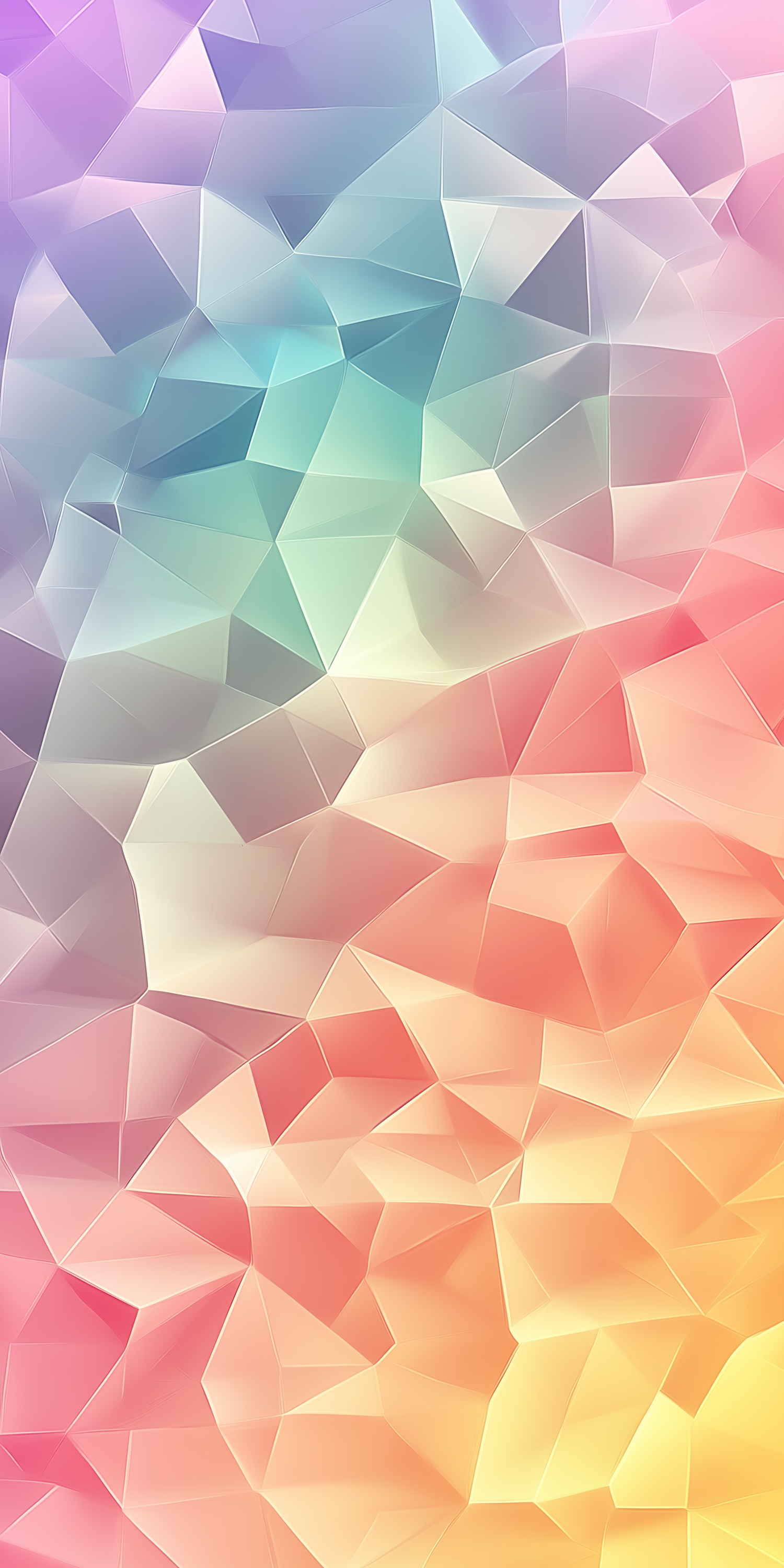 Colorful abstract geometric background with pastel polygonal shapes blending in soft gradients of purple, blue, green, yellow, and pink.