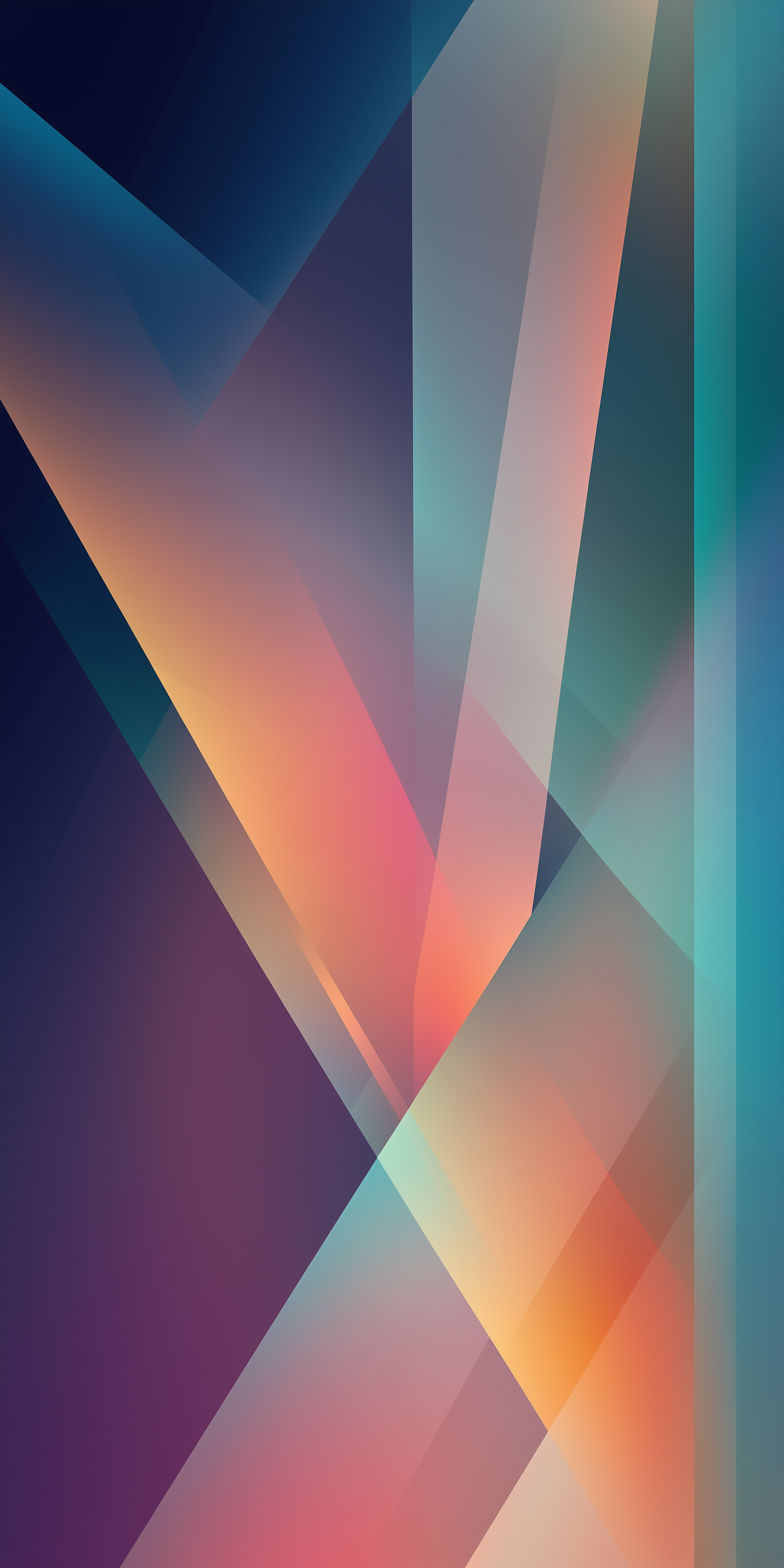 Vibrant abstract art with translucent geometric shapes in blues, purples, oranges, and greens, creating depth and a modern aesthetic.