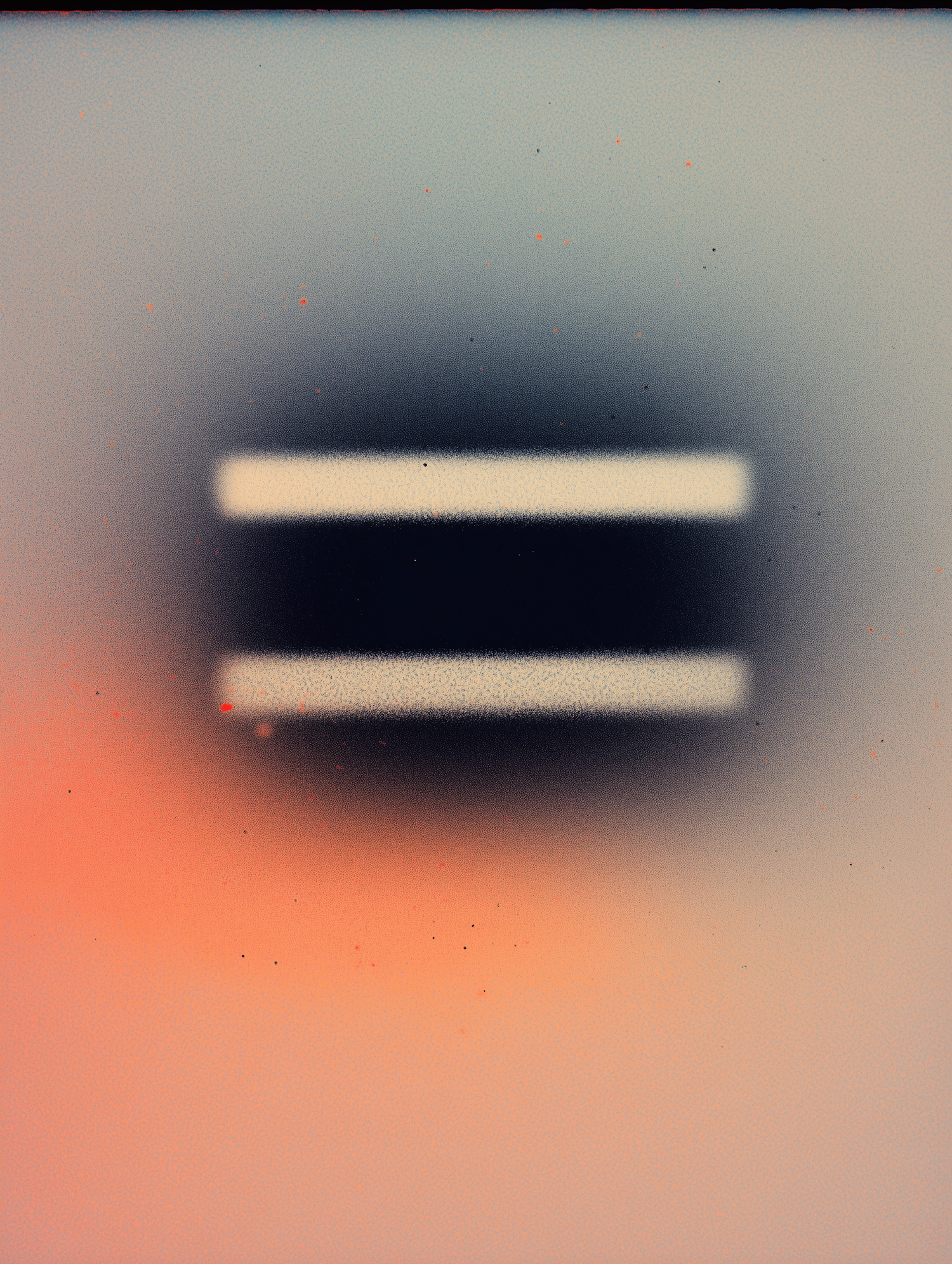 Abstract art with a gradient background, two white bars, and a dark oval shape, creating a modern and minimalistic composition.