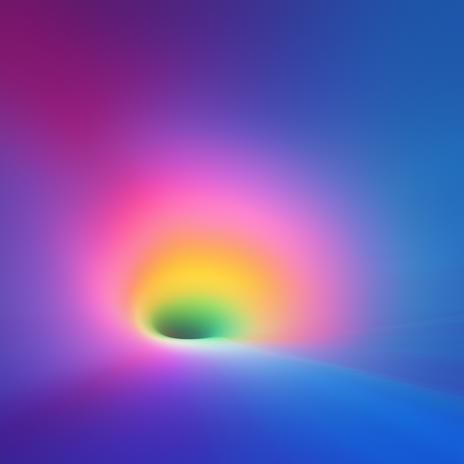 A colorful abstract gradient with a glowing center transitioning from green to pink, surrounded by deep blue and purple hues.