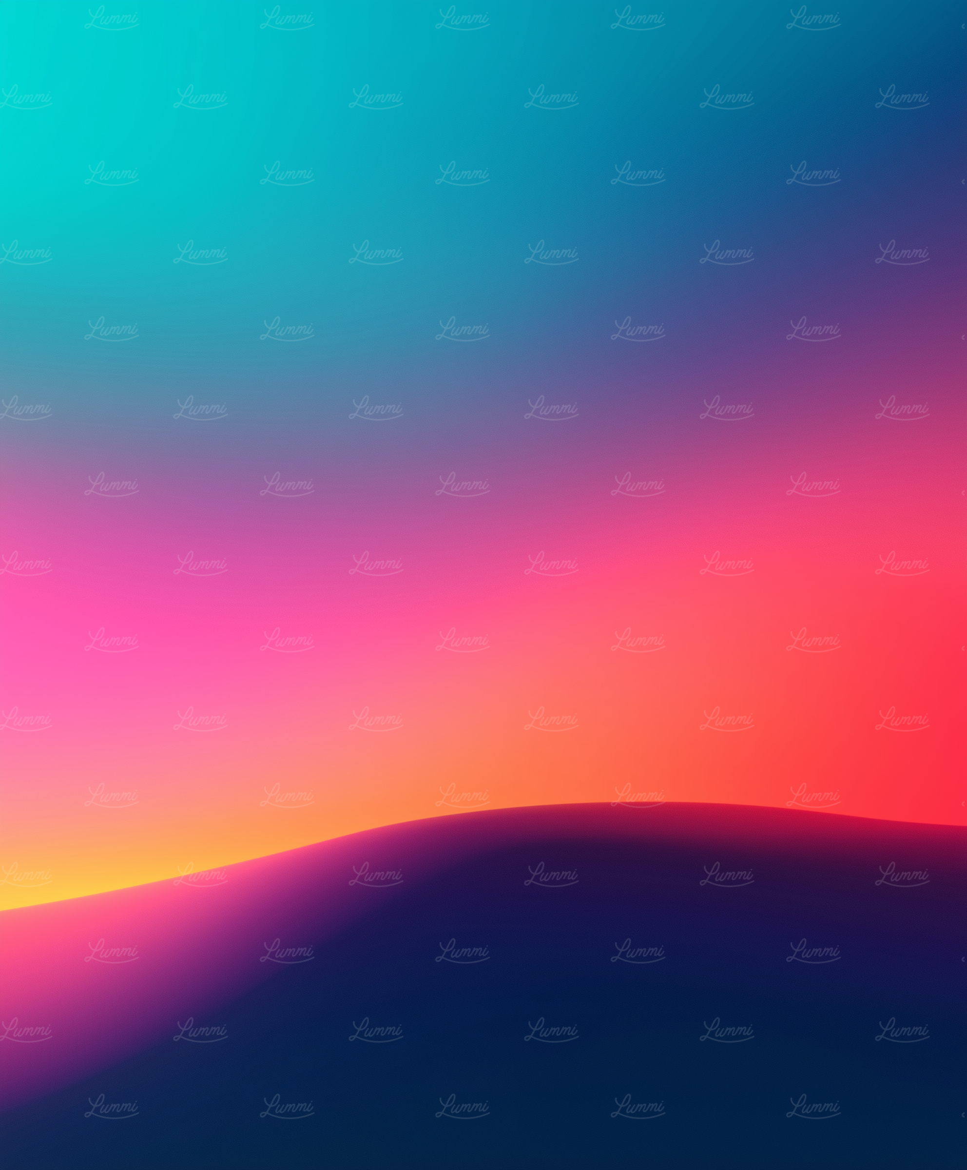 A stunning abstract gradient with vibrant pink, orange, and teal hues blending over a dark, smooth hill-like shape.