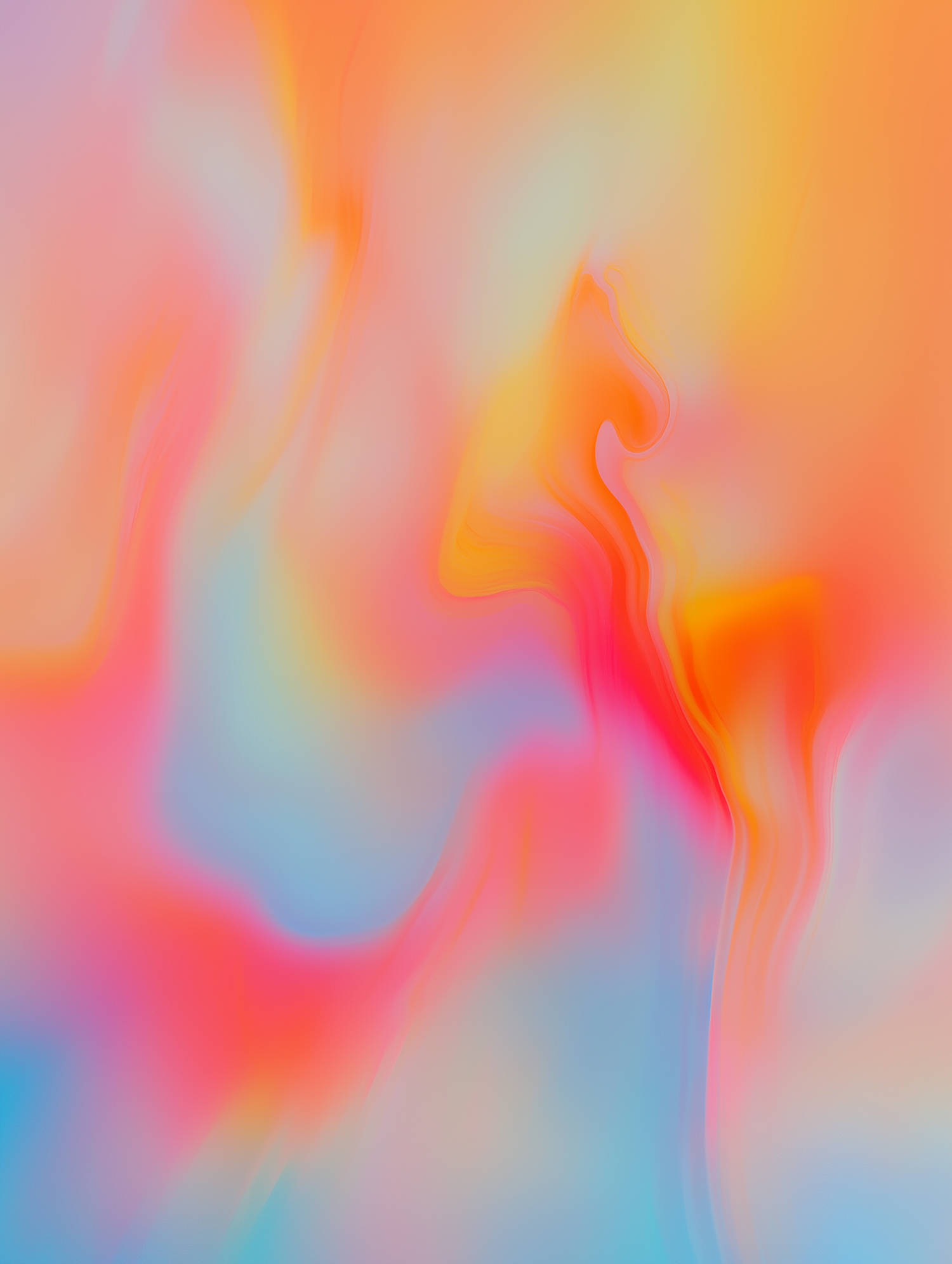 A dreamy abstract gradient with swirling orange, pink, yellow, and blue hues, creating a fluid and vibrant visual effect.