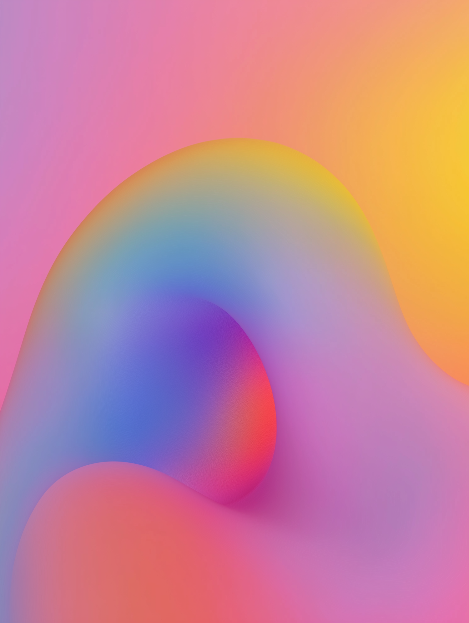 A colorful abstract gradient with flowing shapes and soft transitions between pink, yellow, blue, and purple hues.