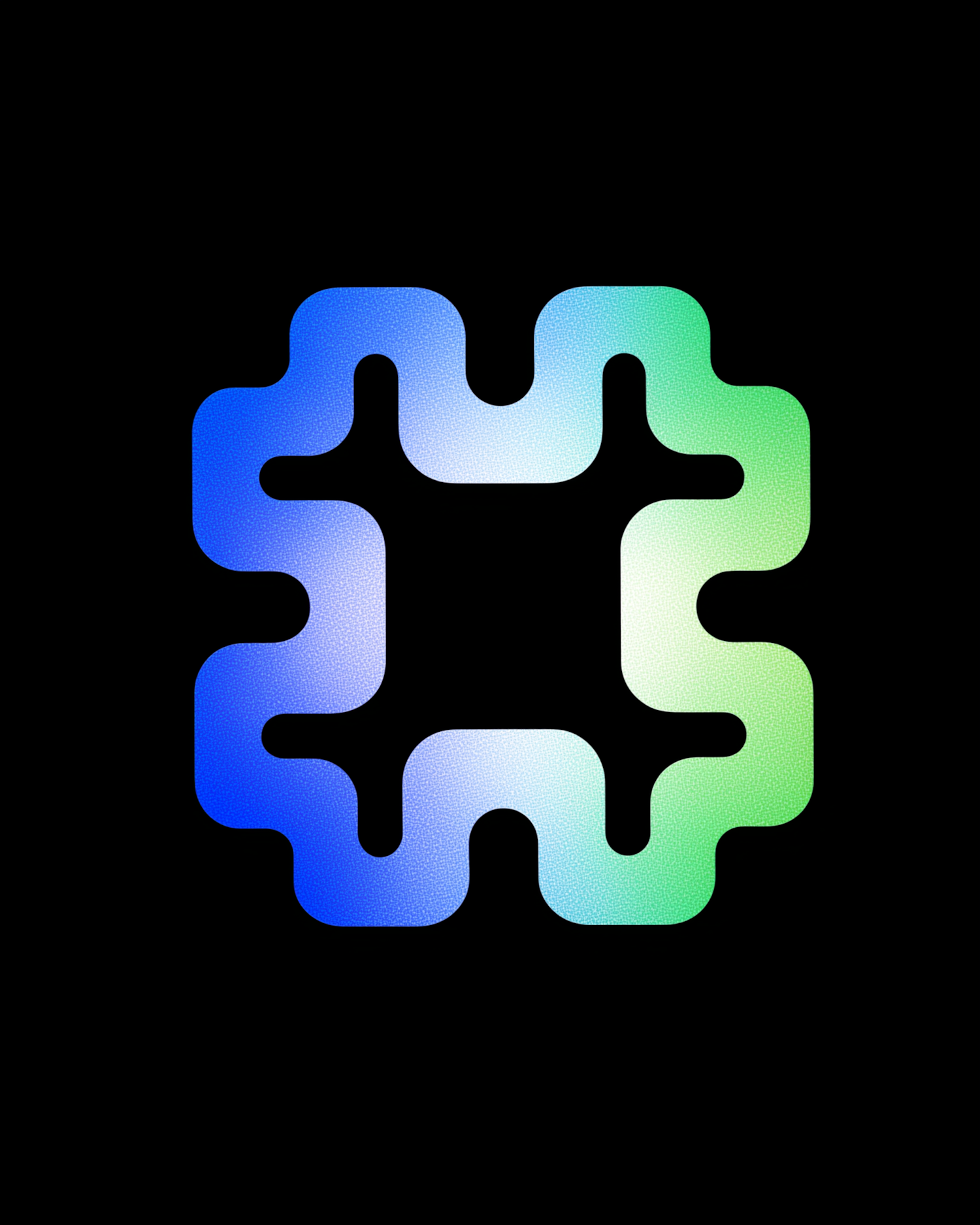 Abstract wavy-edged shape with blue-to-green gradient on a black background, perfect for modern design or branding inspiration.
