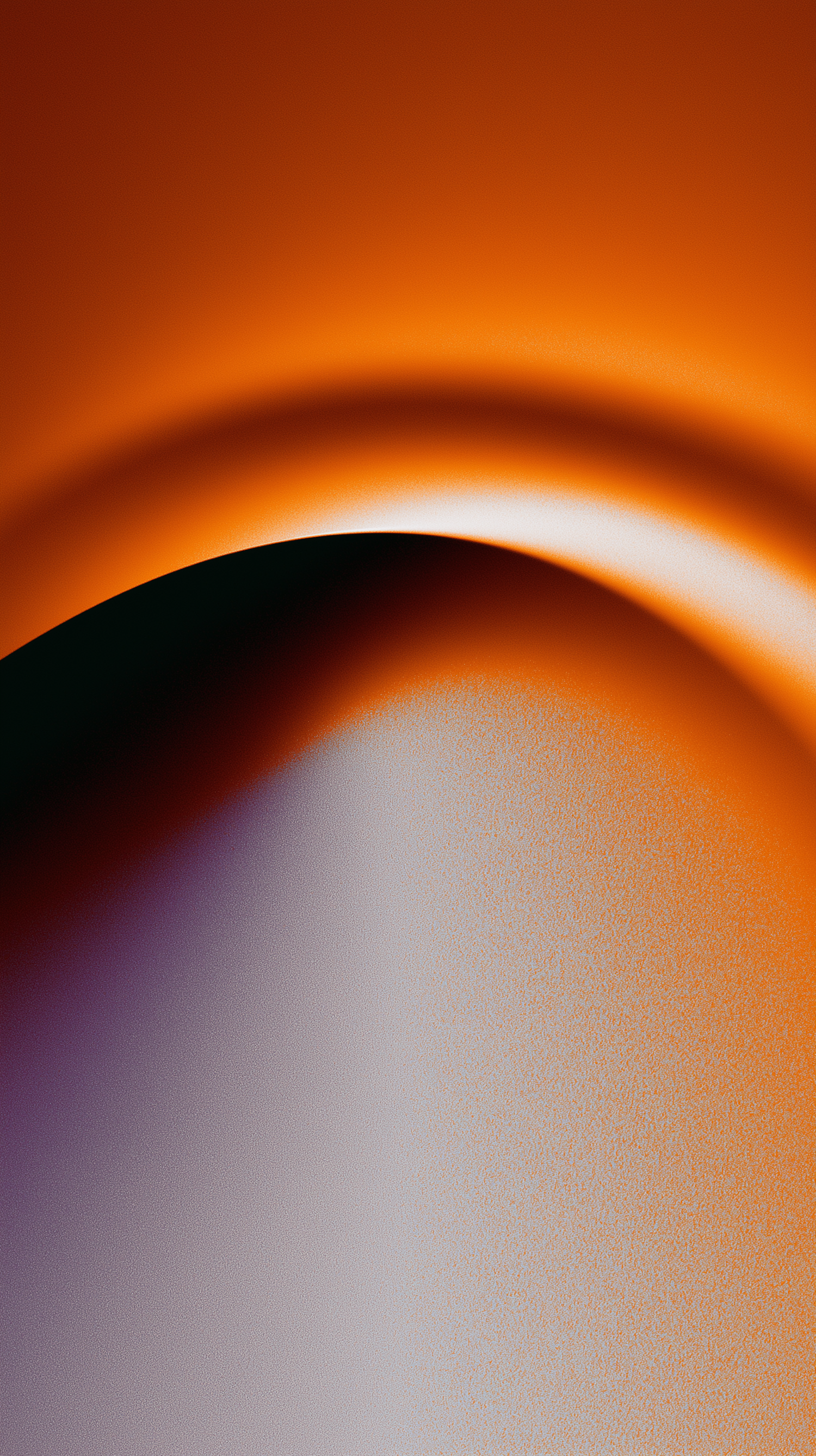 Abstract gradient art with warm orange tones blending into purples and whites, featuring a curved, wave-like design and grainy texture.