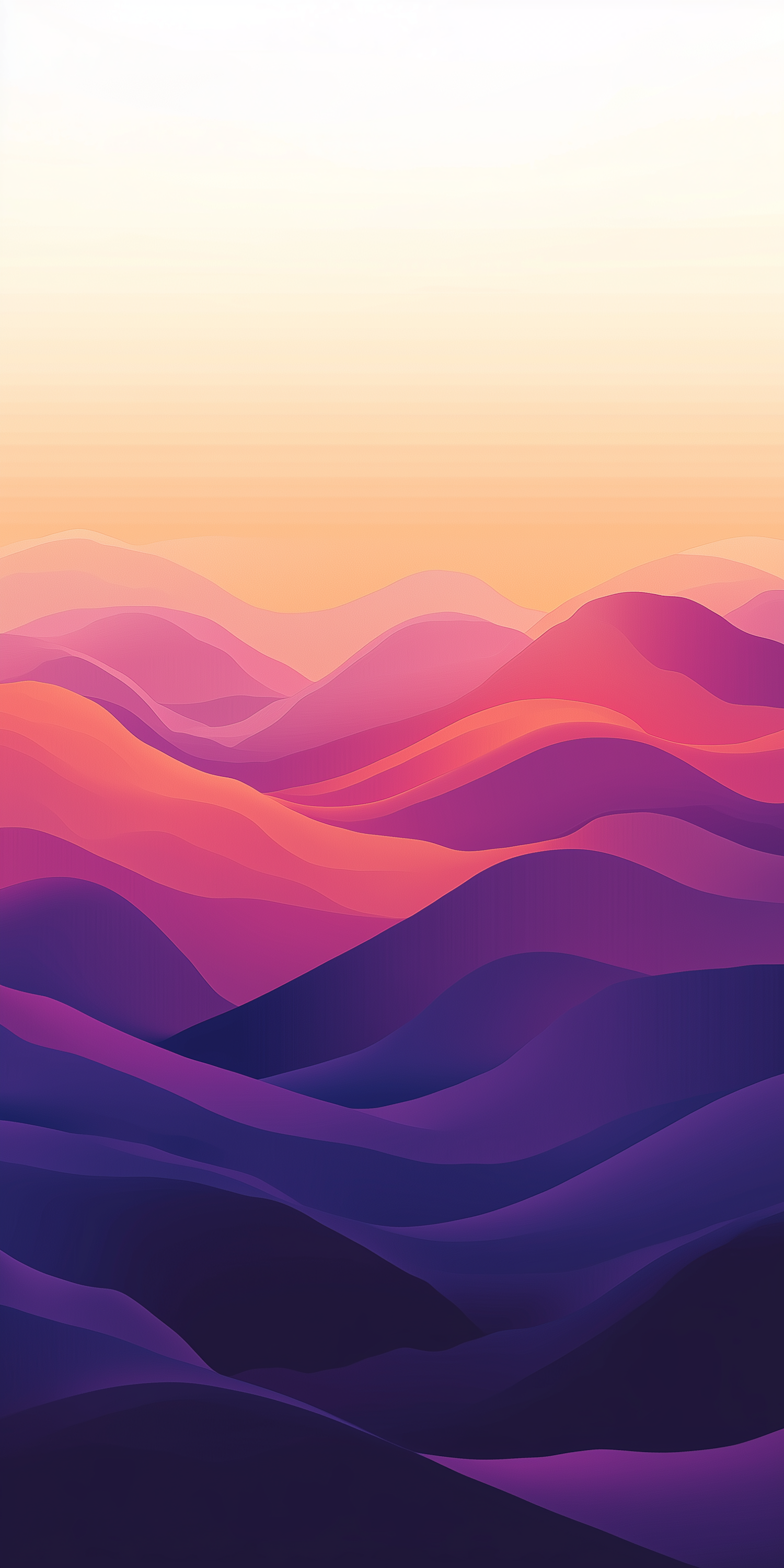 Abstract illustration of colorful layered hills in purple, pink, and orange tones, blending into a serene gradient sky.