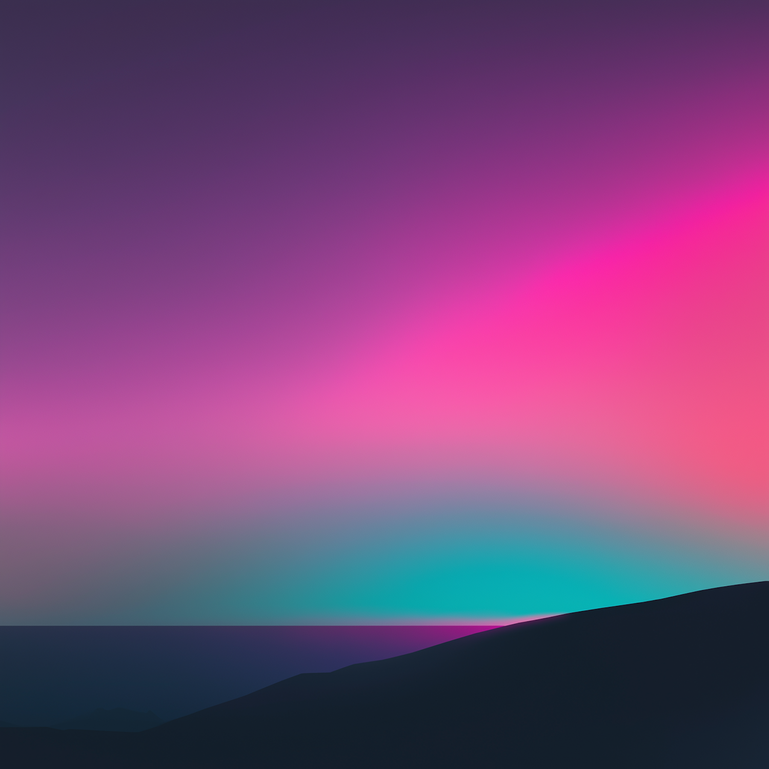 A vibrant gradient sky with purple, pink, and teal hues above a dark silhouetted hill, creating a serene and abstract landscape.