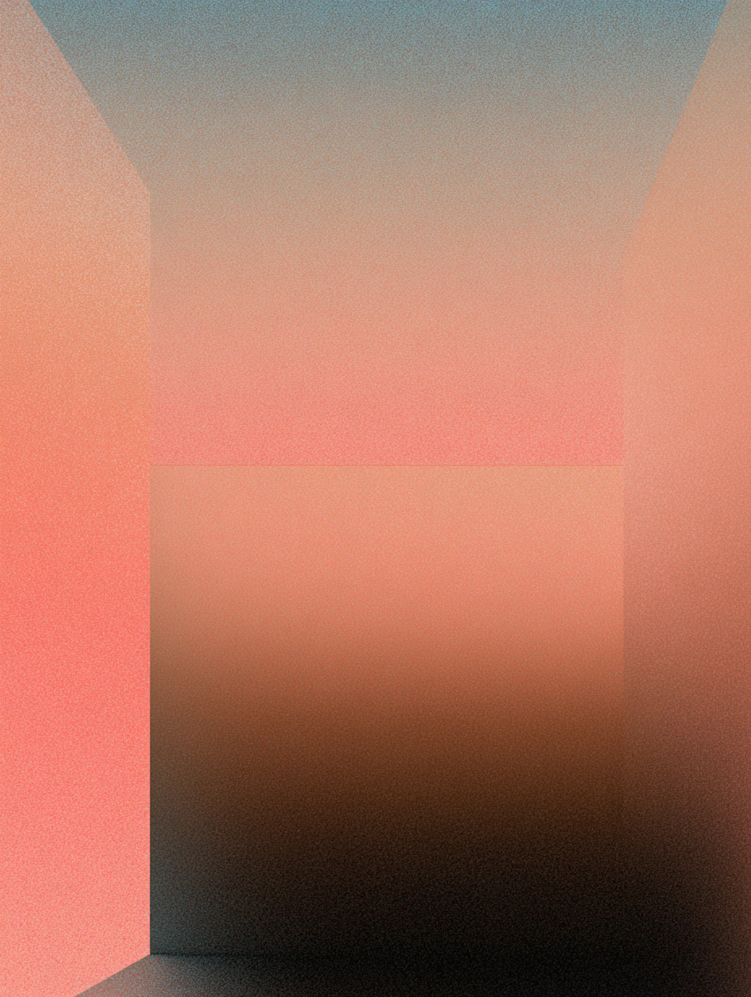 Abstract gradient artwork with warm pinks and oranges transitioning to darker tones, creating a minimalistic and modern geometric space.