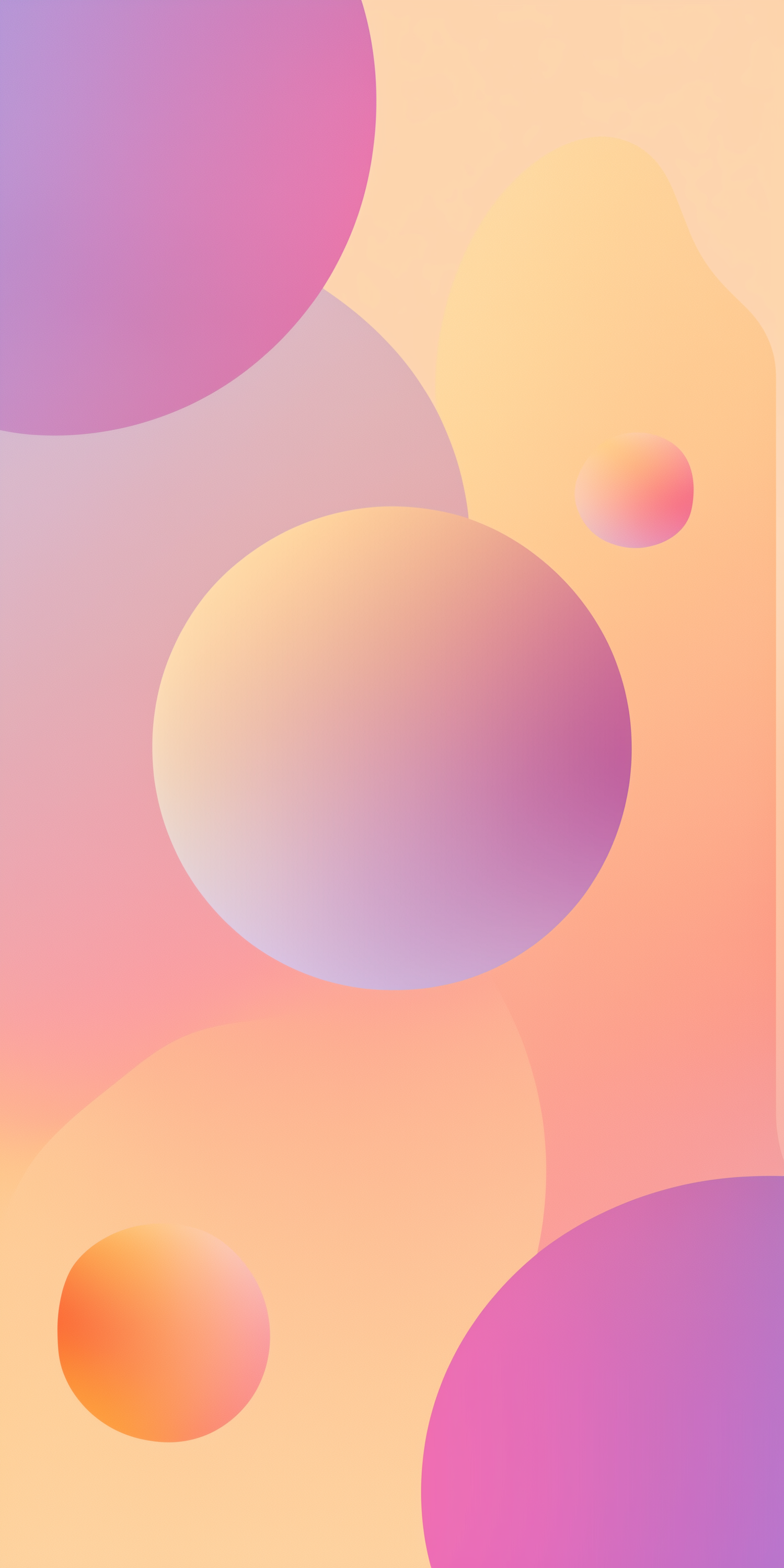 Abstract pastel gradient spheres floating on a dreamy pink, orange, and yellow background. Minimalistic and modern design.