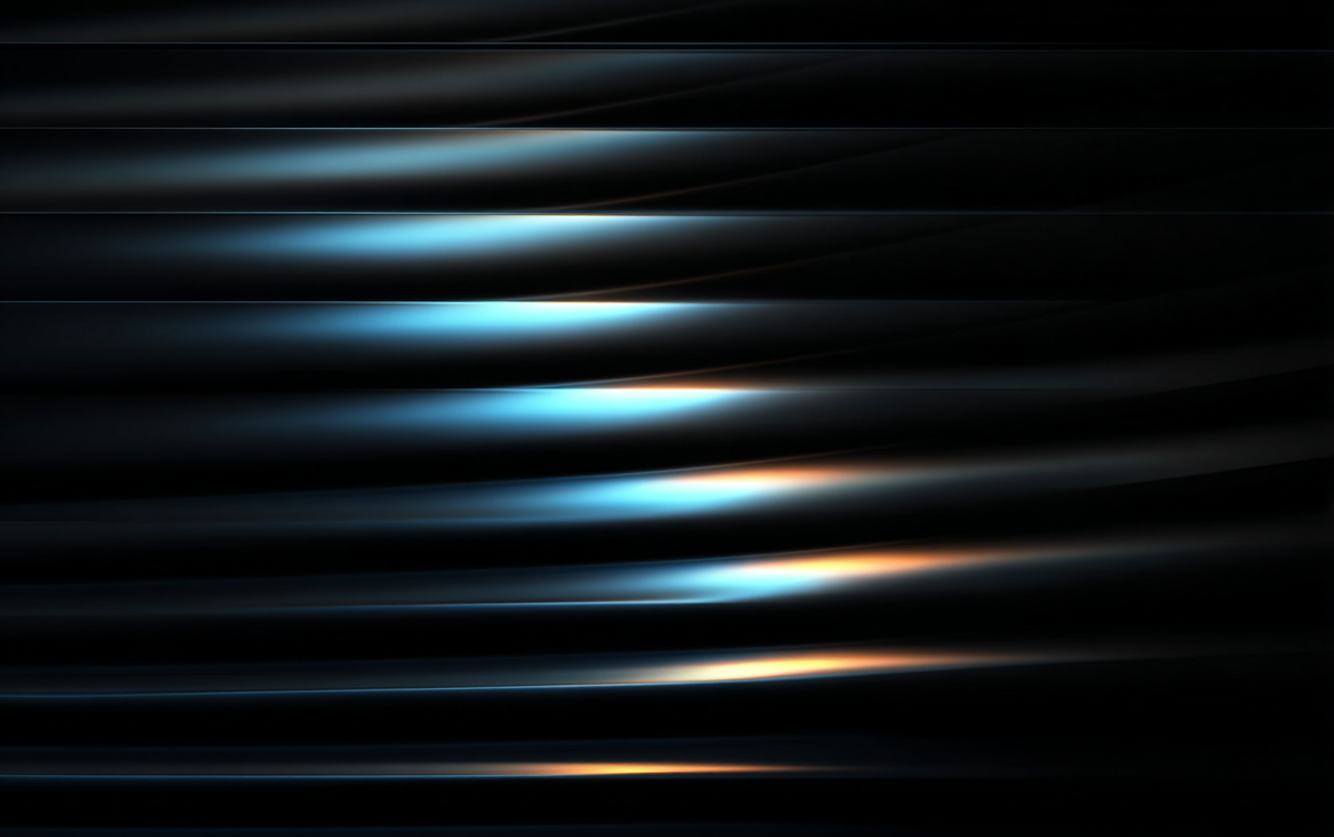 Abstract wavy lines with a metallic sheen, blending blue and orange hues on a dark background, creating a dynamic and modern visual.