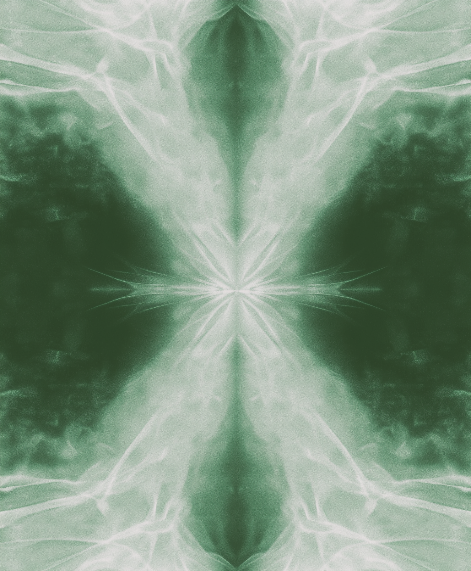 Abstract green symmetrical design with starburst effect, creating a kaleidoscopic and fluid visual experience.