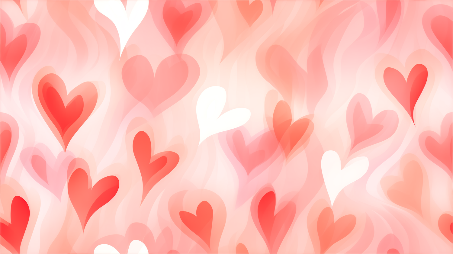 Romantic illustration with red, pink, and white hearts on a soft pink background, perfect for Valentine's Day or love-themed designs.