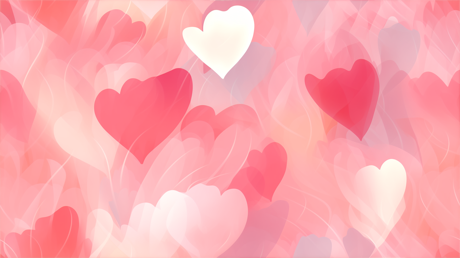 Romantic illustration of layered pink, red, and white hearts on a soft gradient background, evoking love and warmth.