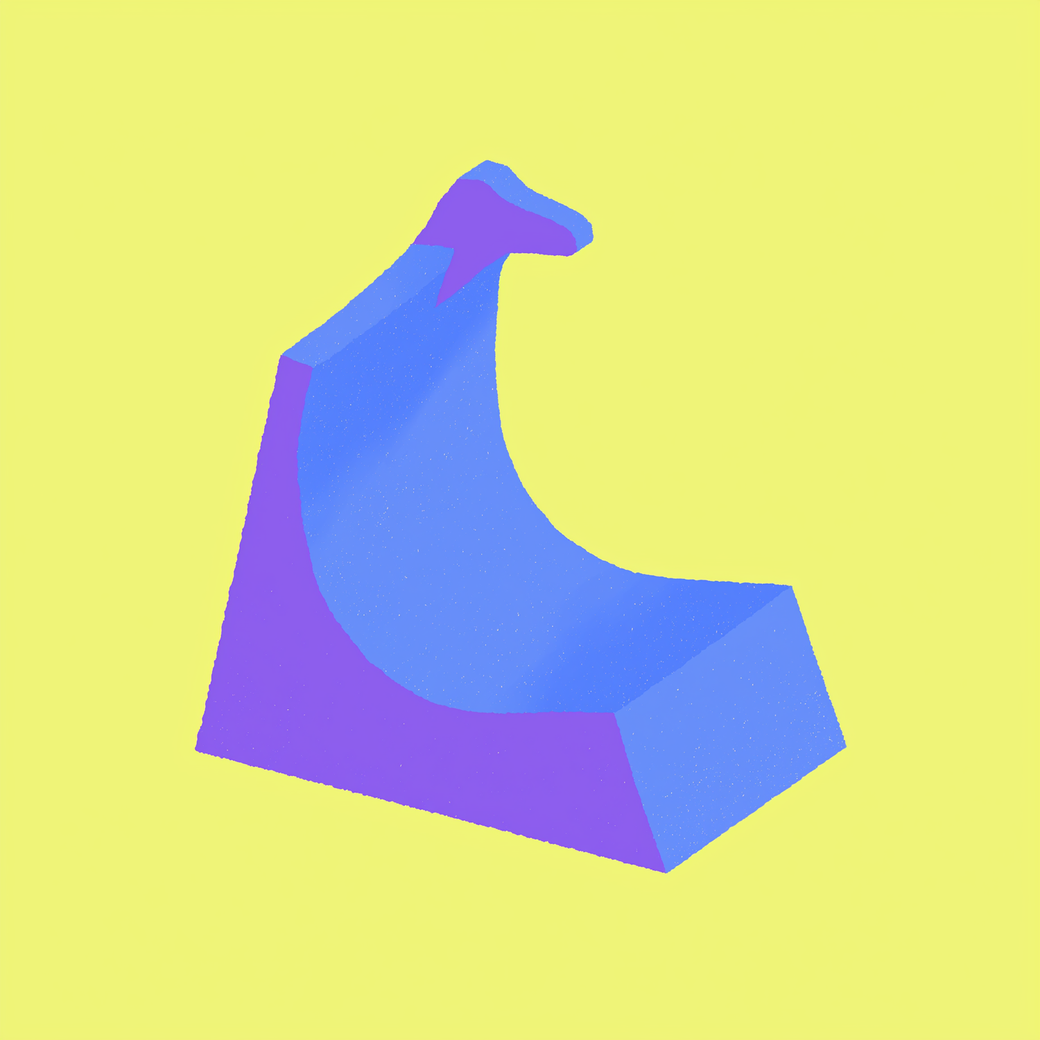 Abstract geometric horse head in blue and purple on a vibrant yellow background, perfect for modern art enthusiasts.