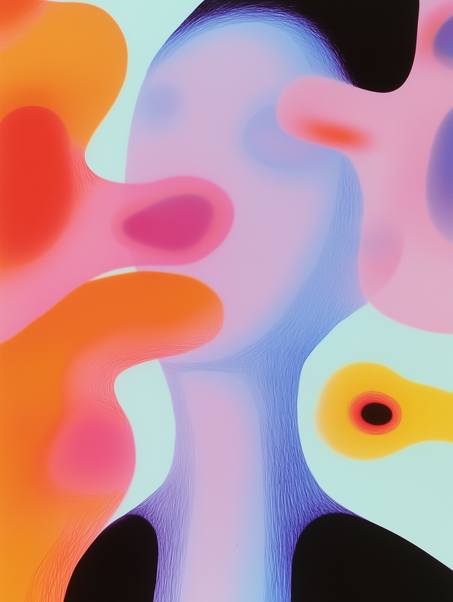 Vibrant abstract illustration with fluid shapes in orange, pink, and blue hues, creating a dynamic and colorful visual experience.