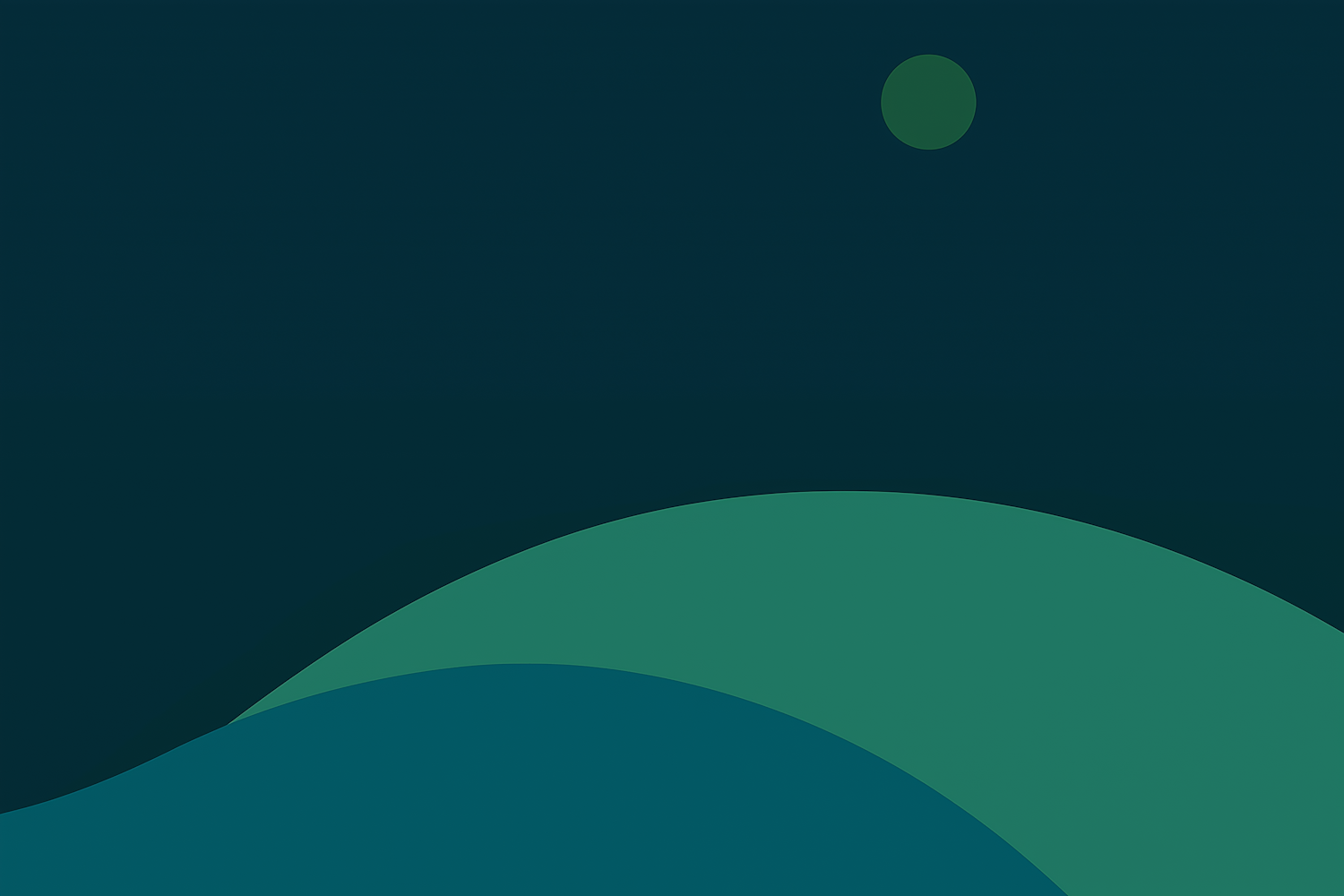 Minimalist abstract illustration with green curves and a circle on a dark teal background, creating depth and movement.