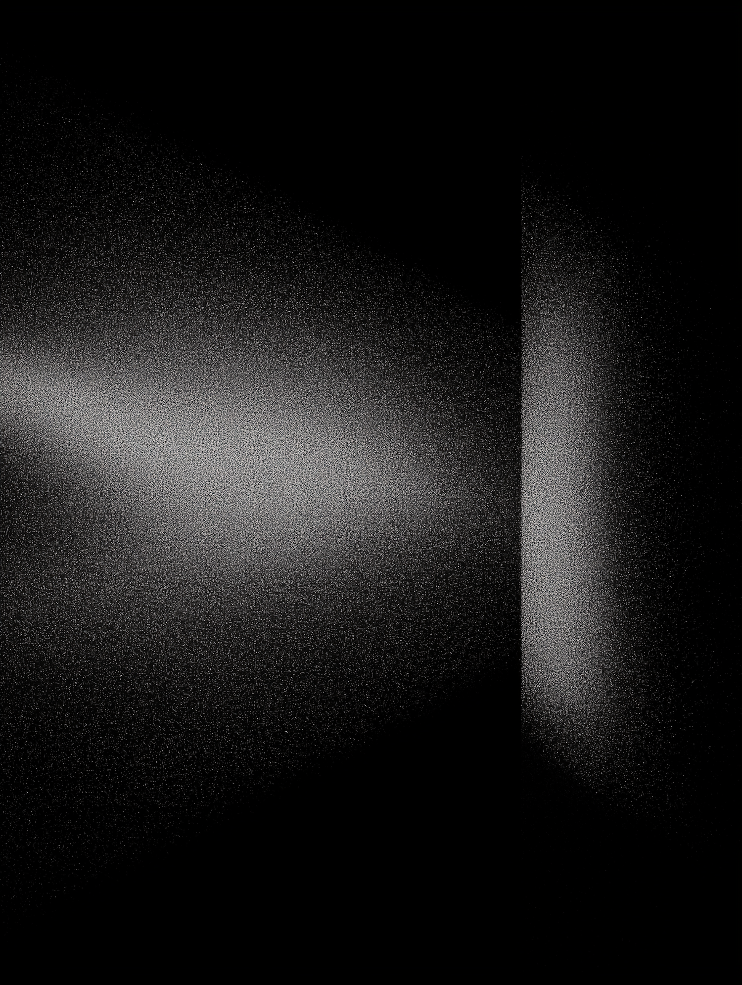 Abstract black and white image with a gradient of light and shadow, featuring a grainy texture and a sharp vertical division.