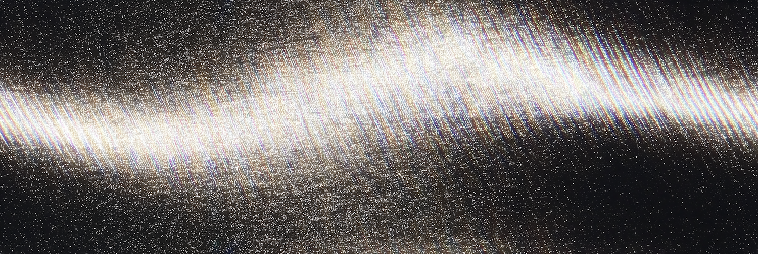 A shimmering, abstract composition of light streaks and glitter textures on a deep black background with a glittering effect.