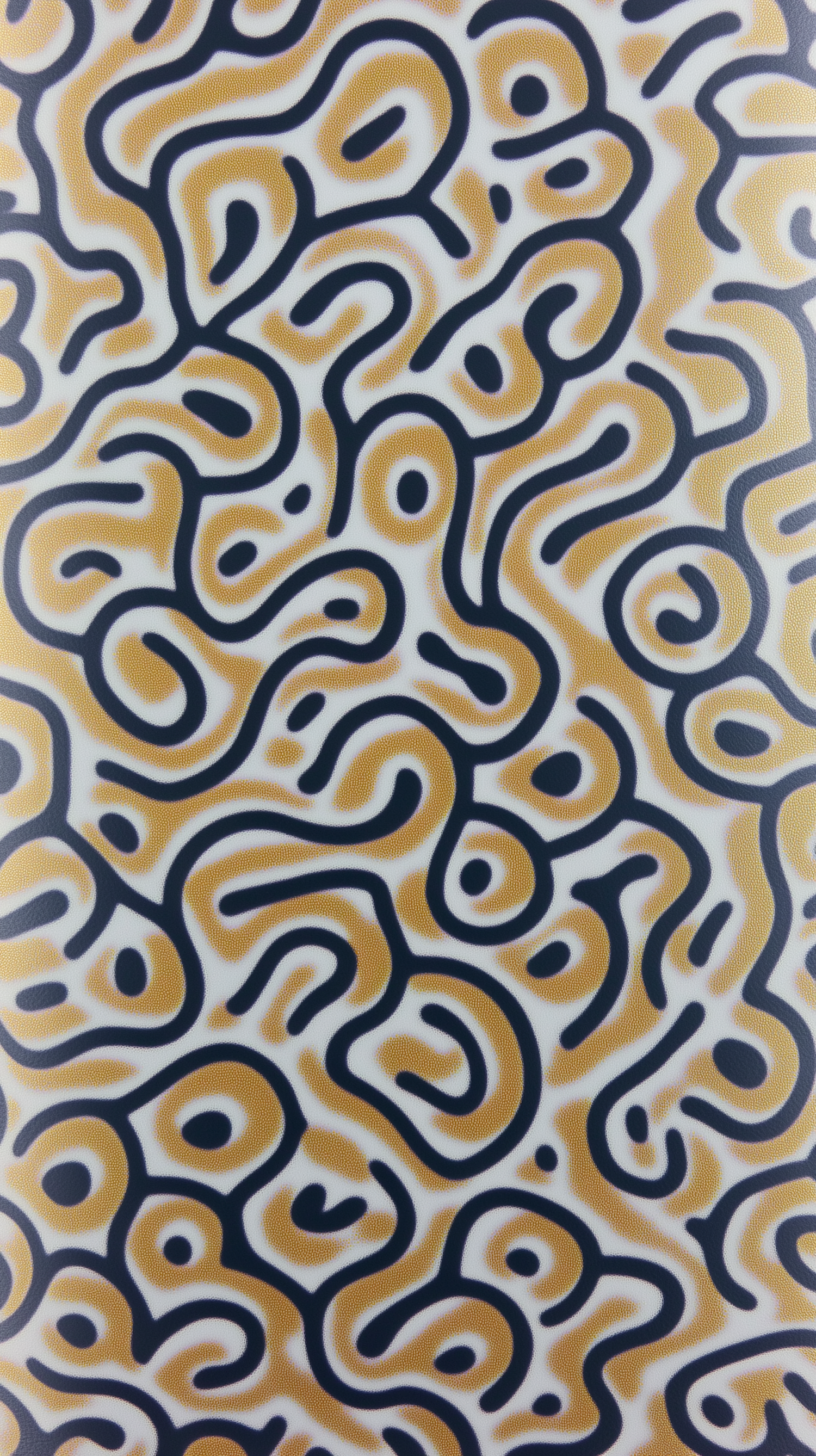 Abstract maze-like pattern with black lines and golden-yellow accents on a white background, creating a vibrant and organic design.