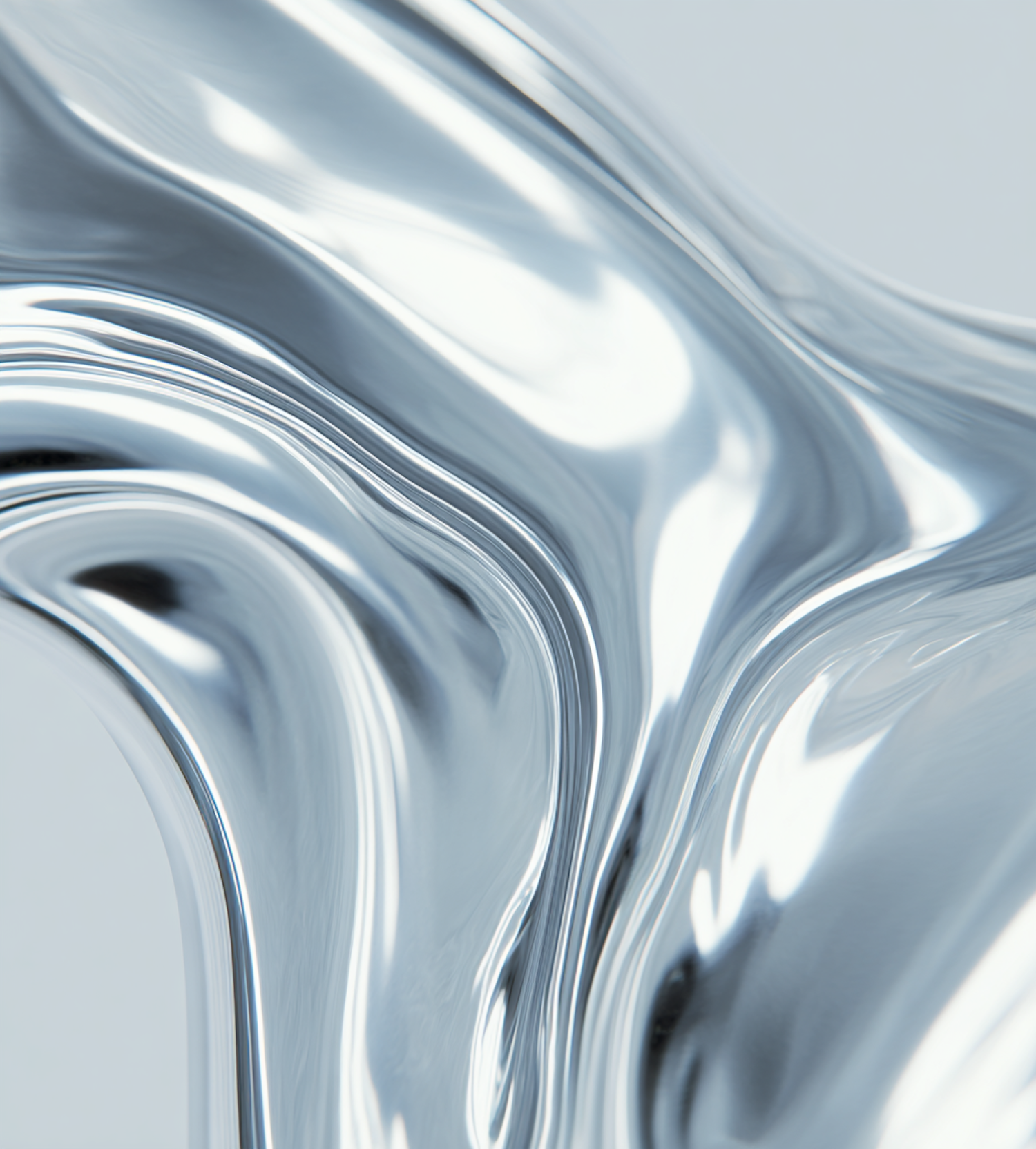 A captivating abstract design showcasing flowing metallic surface textures with reflective highlights and smooth gradients.
