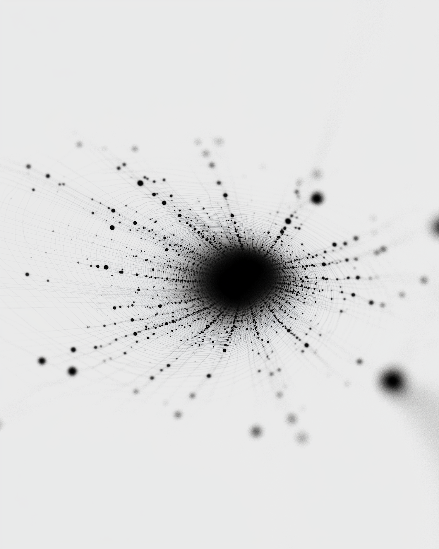 Abstract illustration of a black dot network radiating outward on a light gray background, symbolizing connectivity and data visualization.