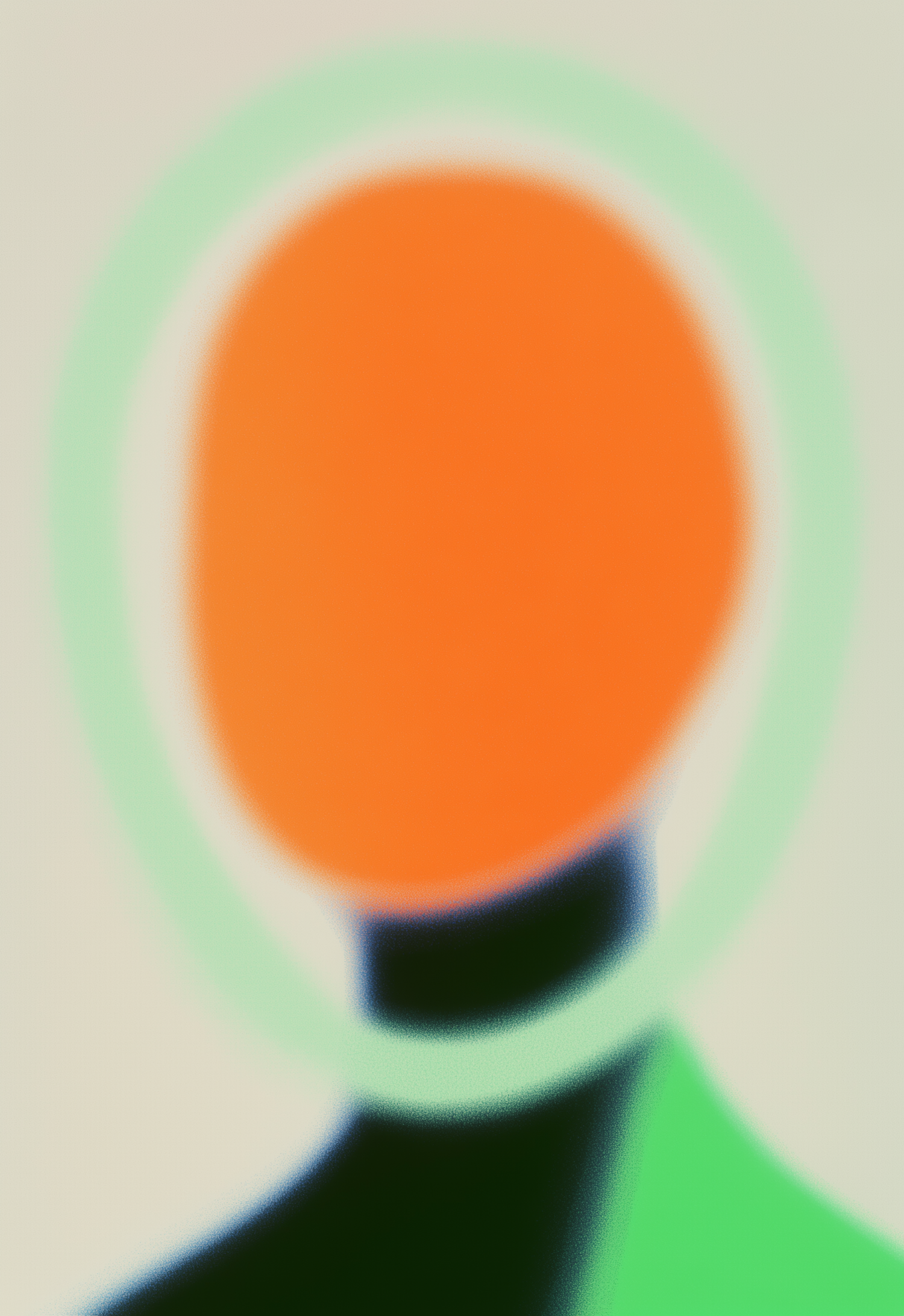 Abstract art with a blurred orange oval, green halo, and gradient green shapes on a beige background. Minimalistic and modern design.