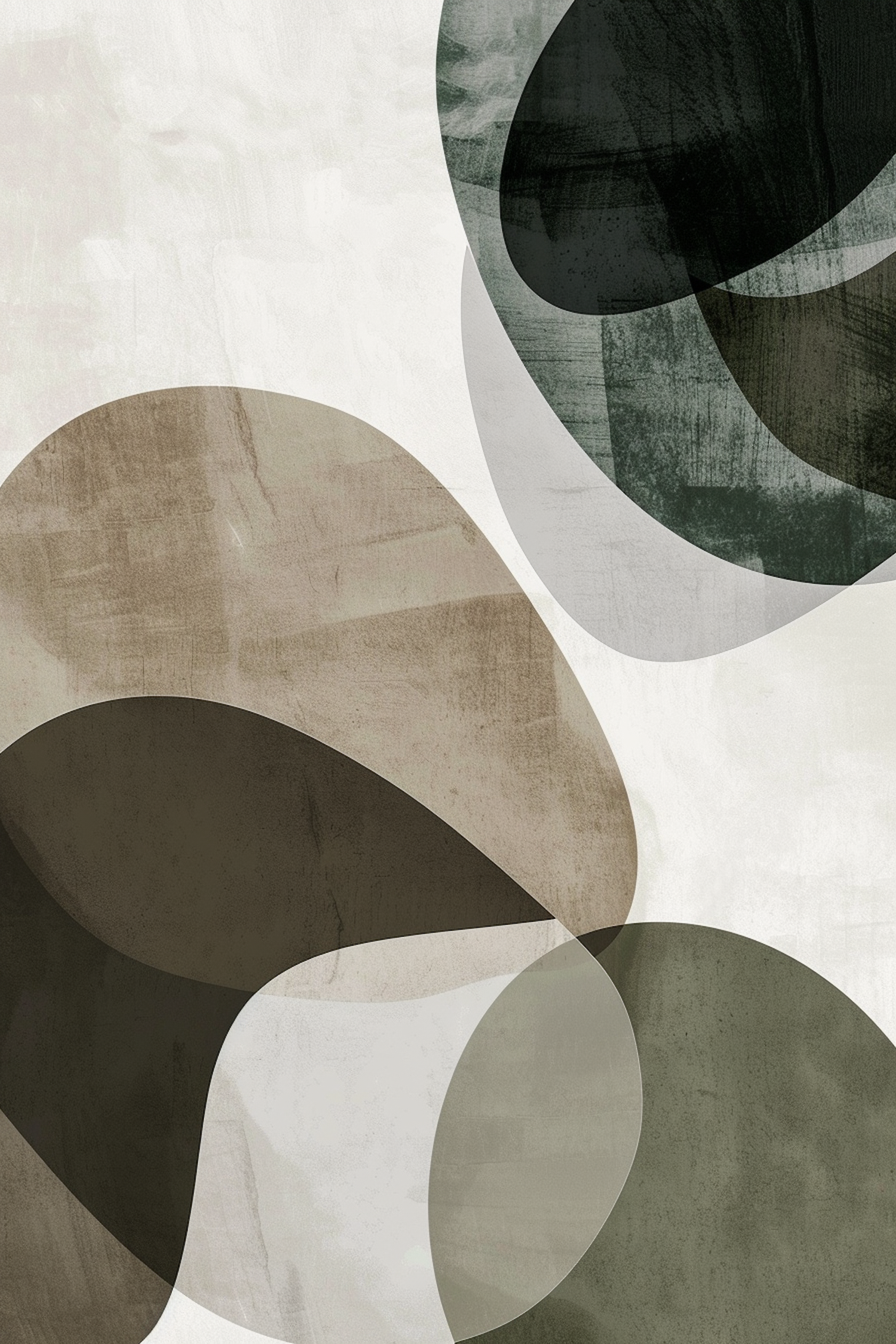 Abstract art with overlapping organic shapes in earthy tones of brown, green, and beige, creating a calming and sophisticated design.