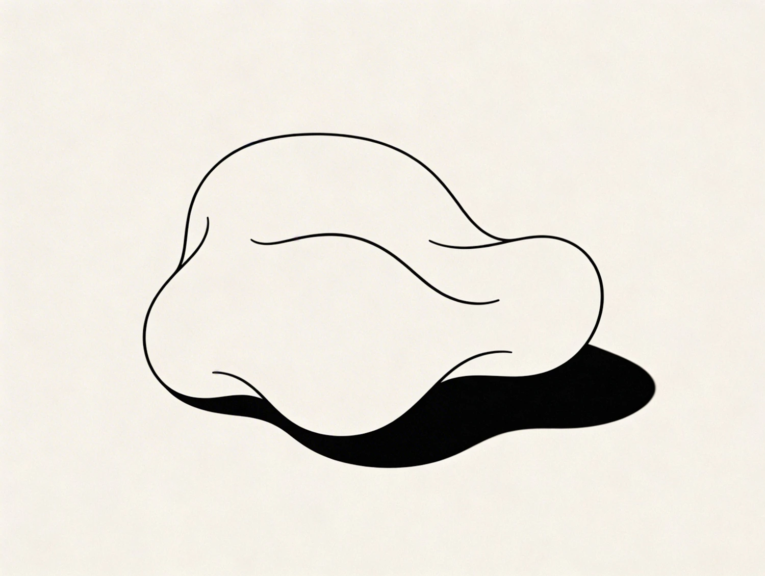 Minimalist abstract illustration of a flowing organic shape with a shadow, outlined in black on a white background.
