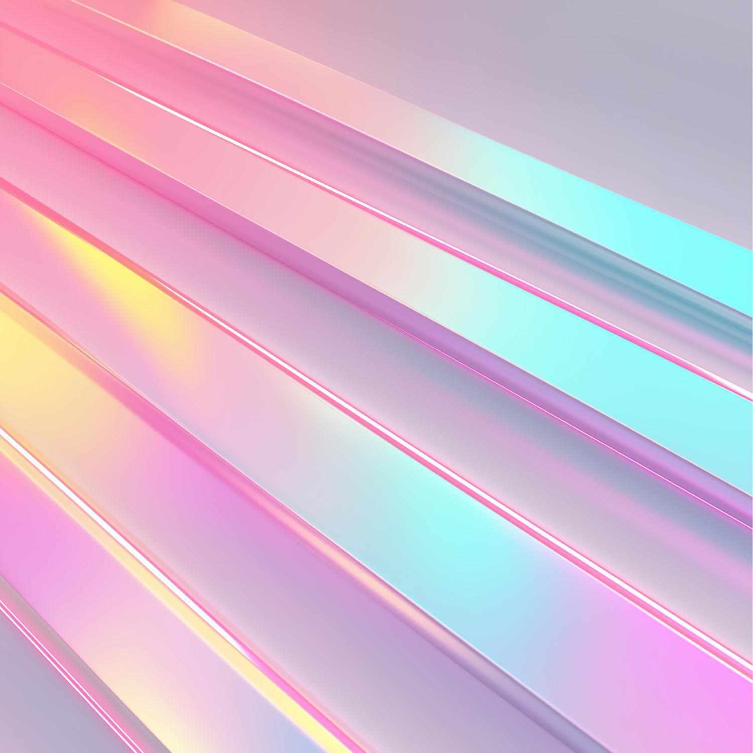 Abstract pastel gradient with glossy diagonal lines in pink, blue, and yellow tones, creating a dreamy and futuristic aesthetic.