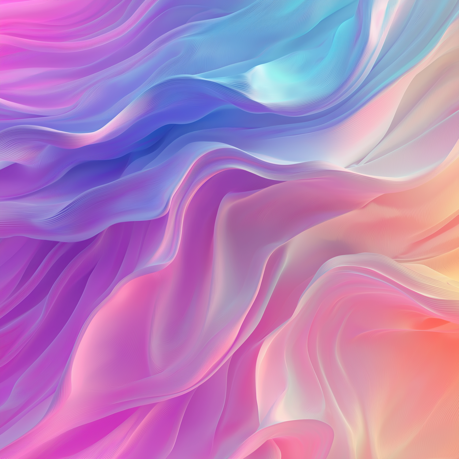 Abstract pastel waves in pink, purple, and blue tones create a dreamy, flowing texture resembling silk or rippling clouds.
