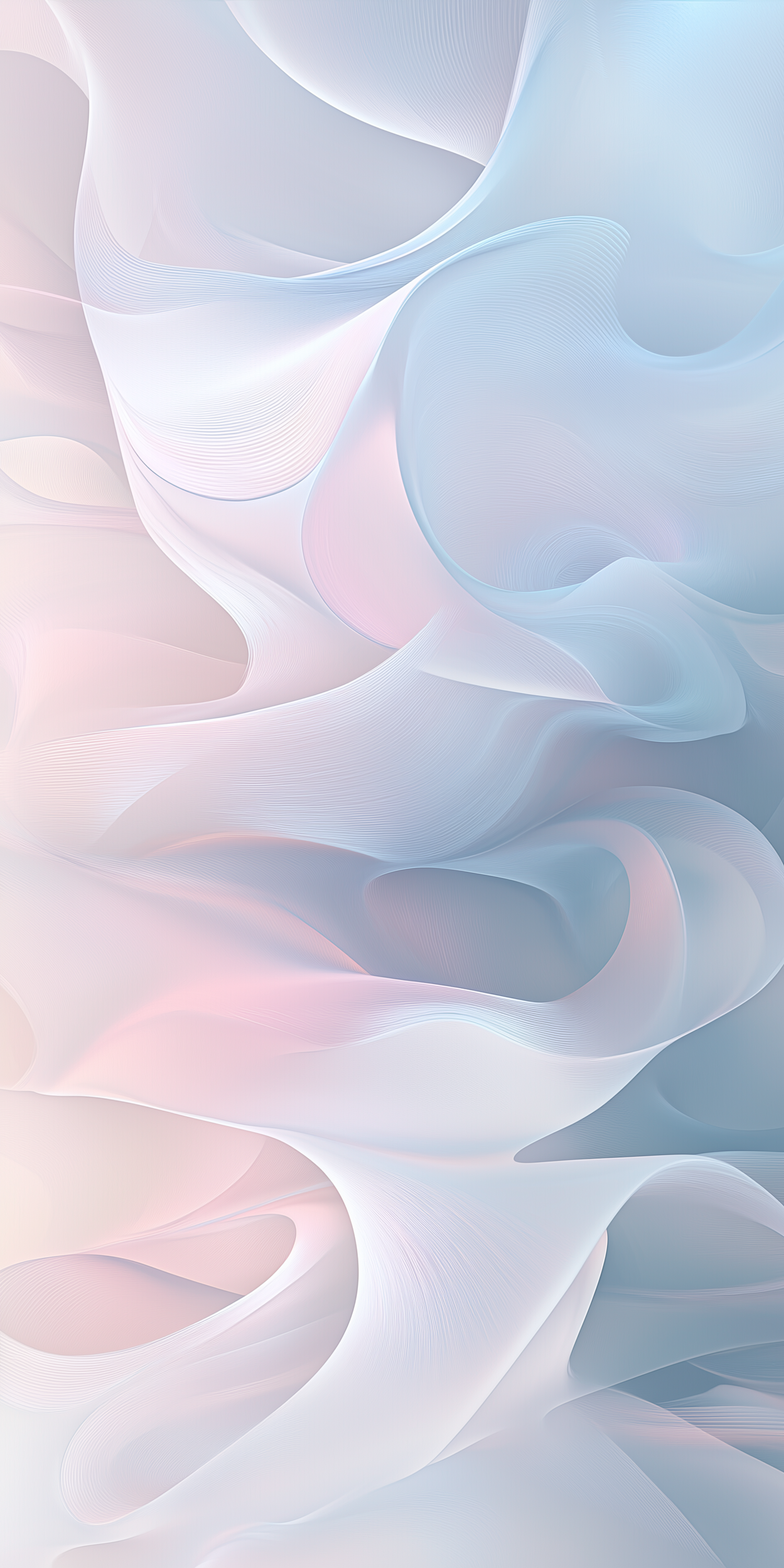 Abstract pastel waves in pink, blue, and white create a soft, flowing design with a calming and ethereal feel.