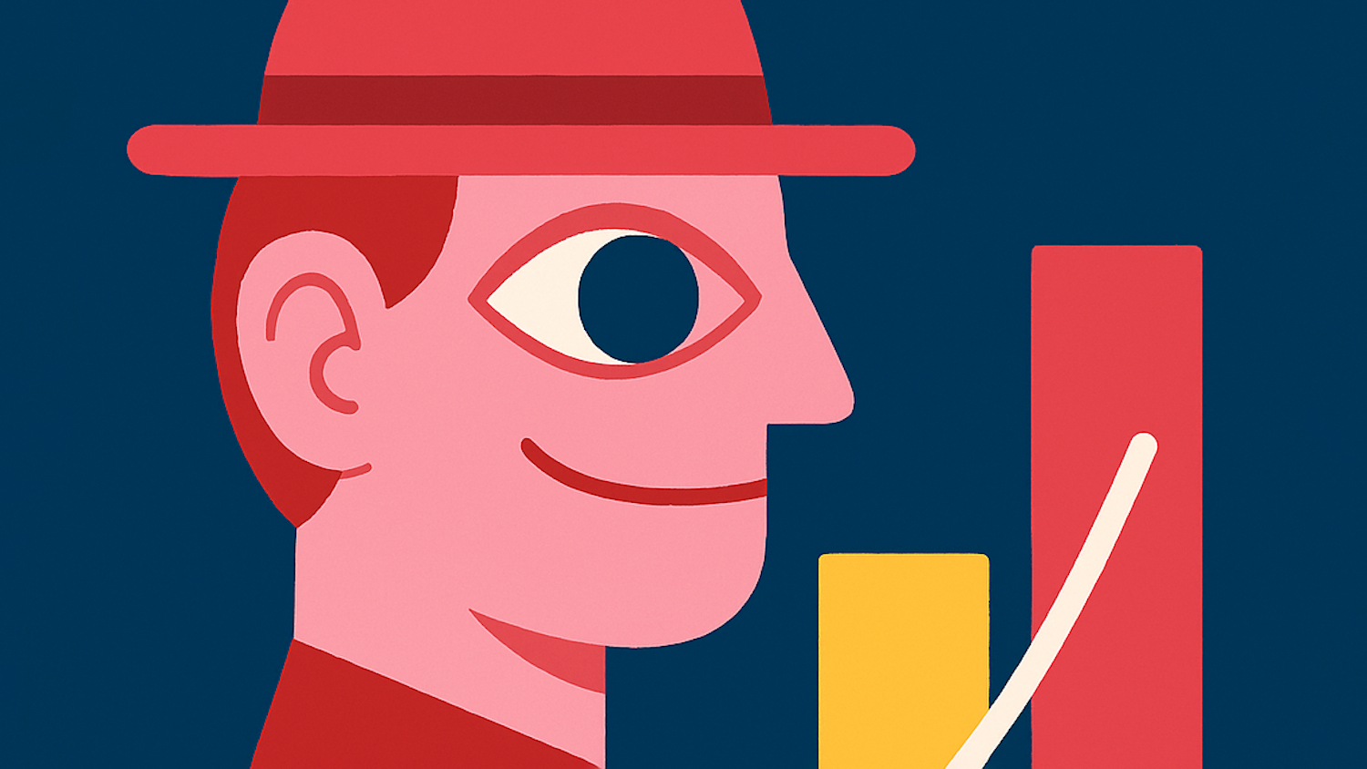 Minimalist illustration of a person in profile with bar and line graphs, symbolizing growth or analytics, in bold, vibrant colors.