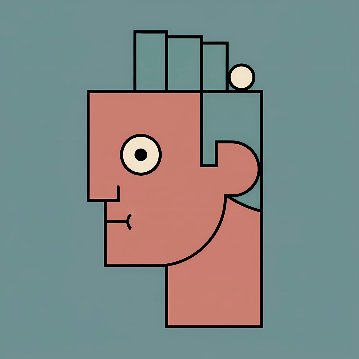 Abstract geometric illustration of a human profile with bold lines and muted colors, showcasing a modern minimalist design.
