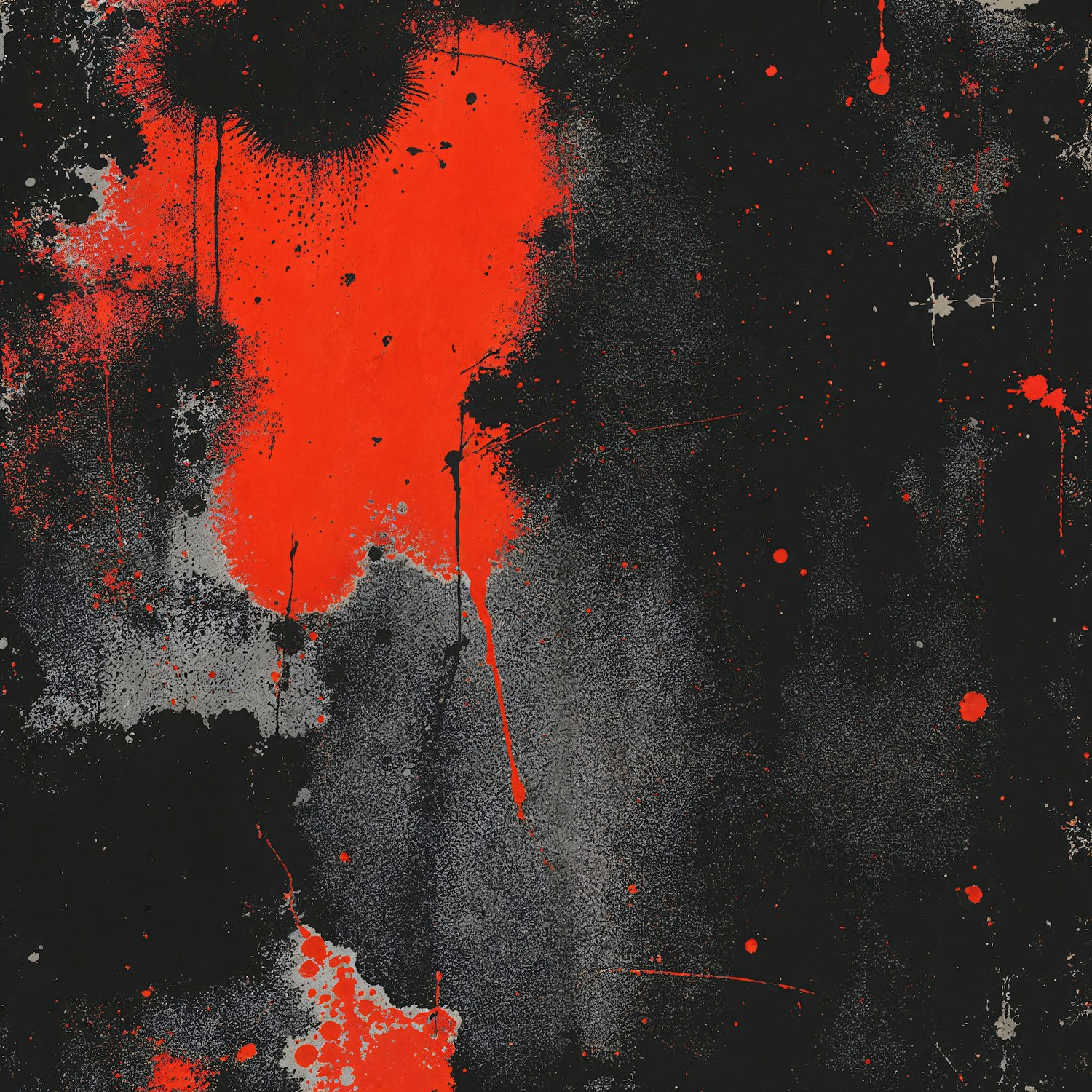 Abstract art with bold red splashes on a textured black and gray background, creating a dynamic and intense visual impact.