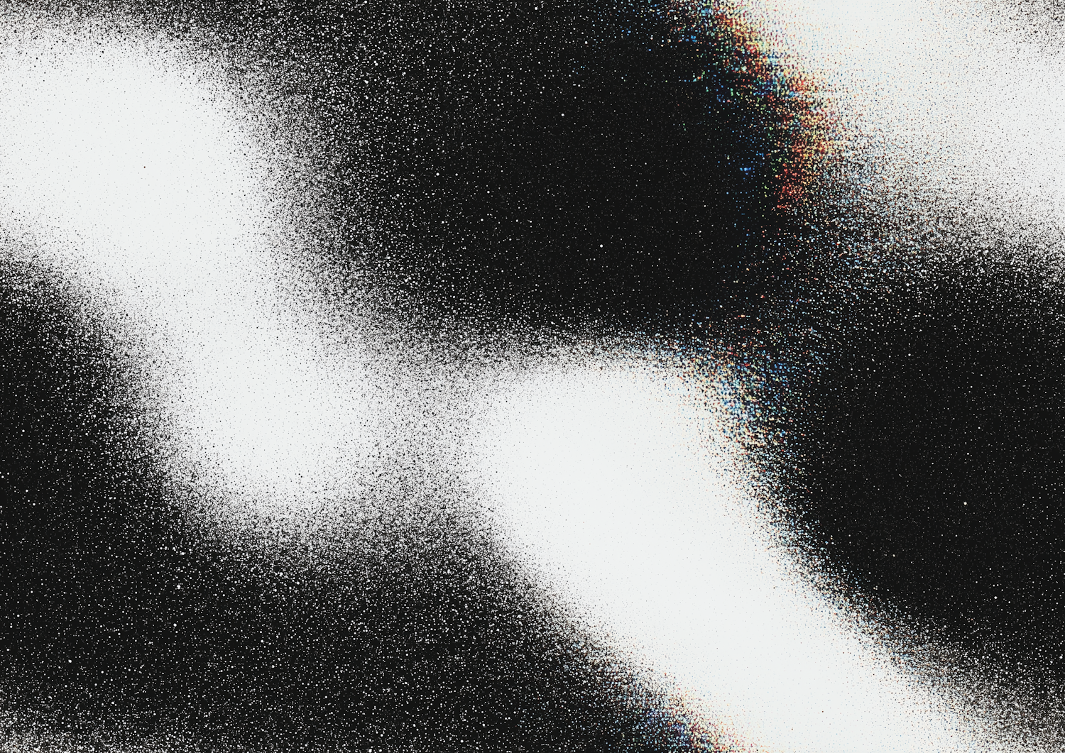 Explore the dynamic abstract composition of stippled black and white textures, dotted with subtle hues and a sense of visual rhythm.