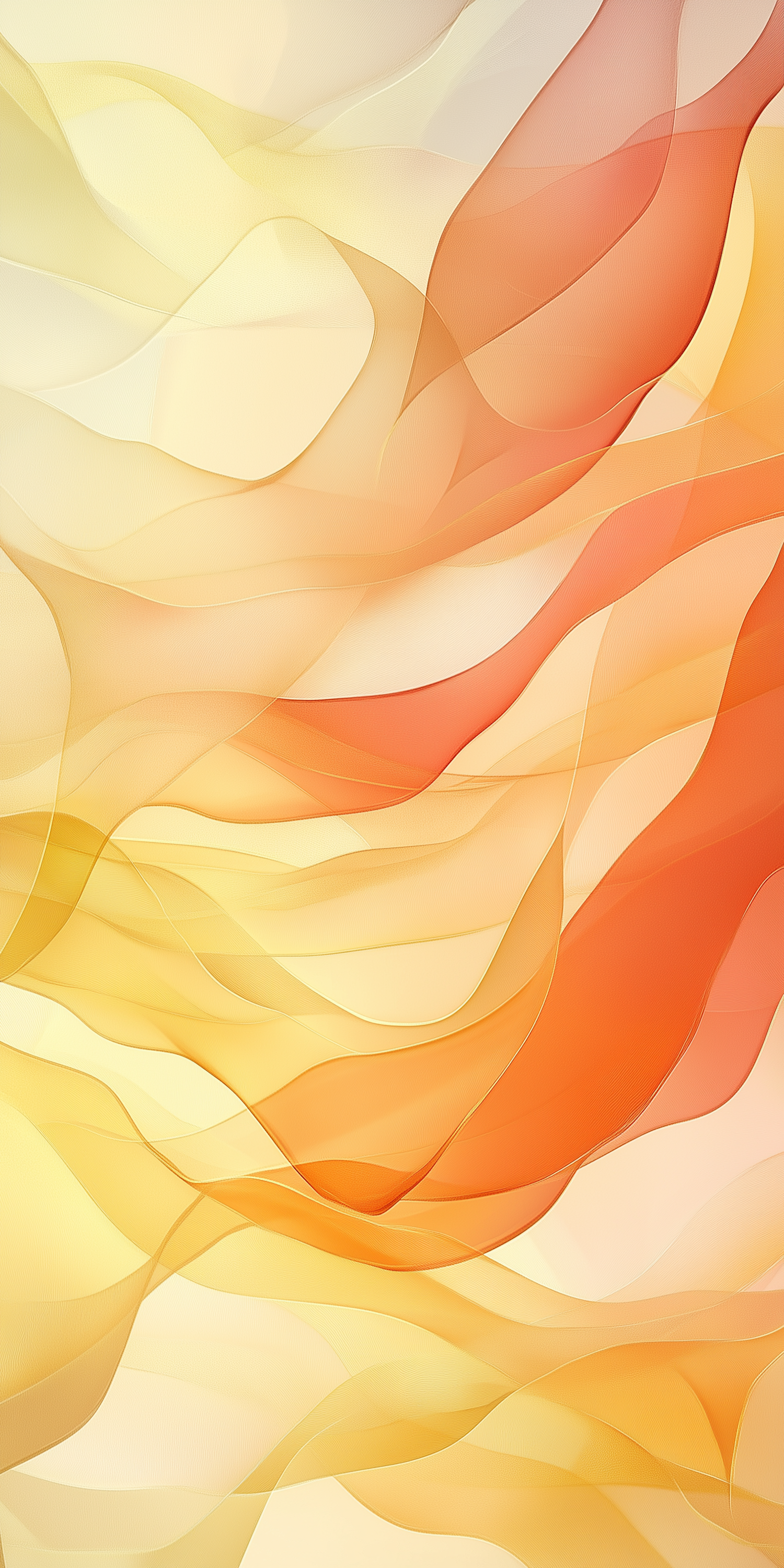 Abstract waves in warm yellow, orange, and red tones create a flowing, dynamic design with smooth gradients and a sense of depth.