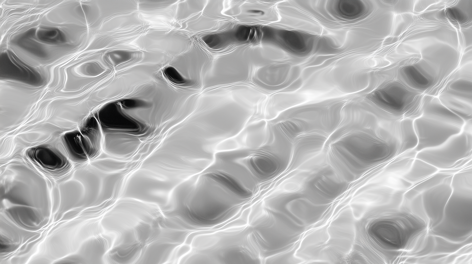 Abstract grayscale pattern resembling water ripples with light reflections, creating a fluid and calming visual effect.