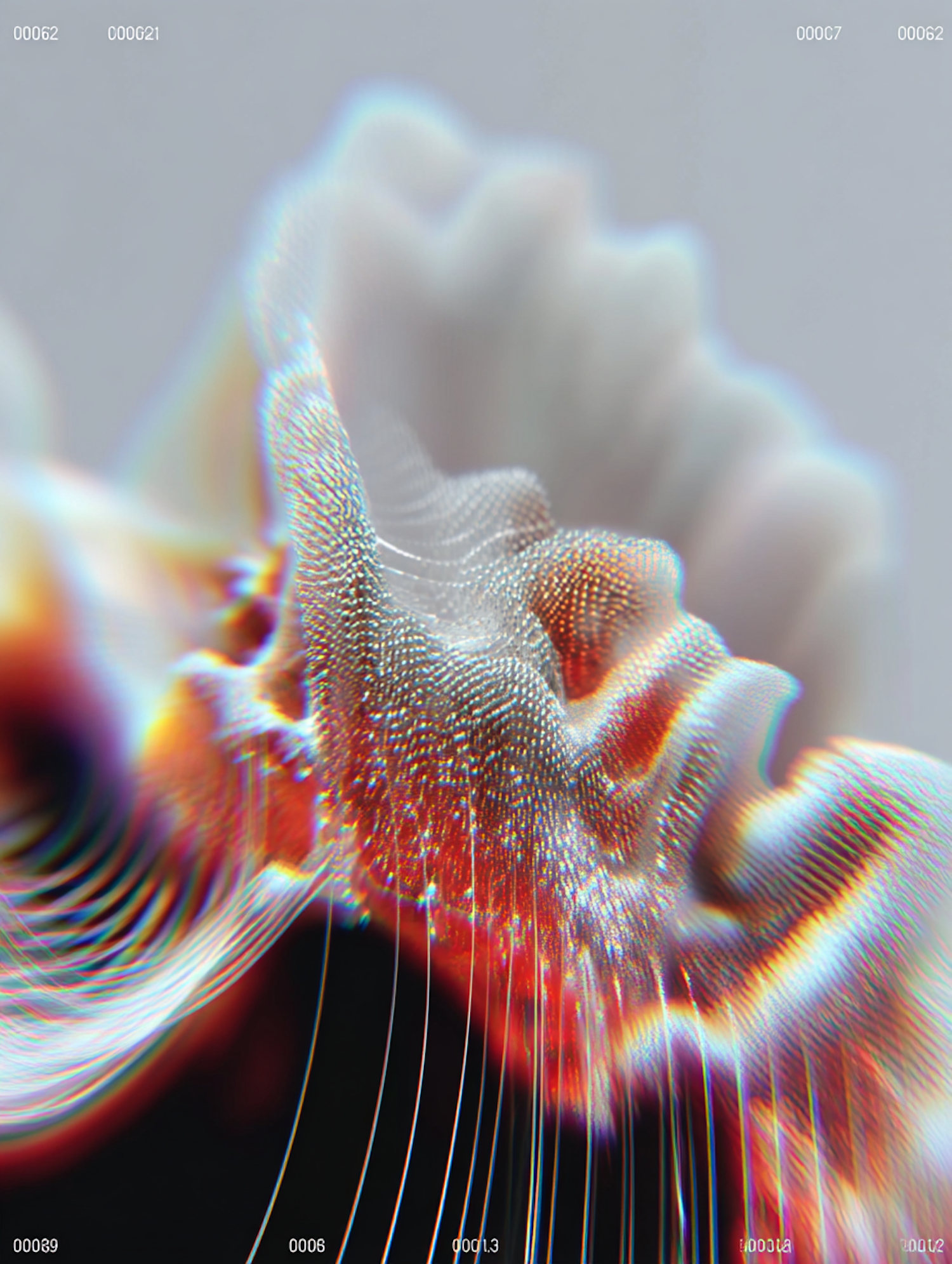Abstract digital art with vibrant colors and intricate patterns, featuring a dynamic wave-like structure with glowing effects.