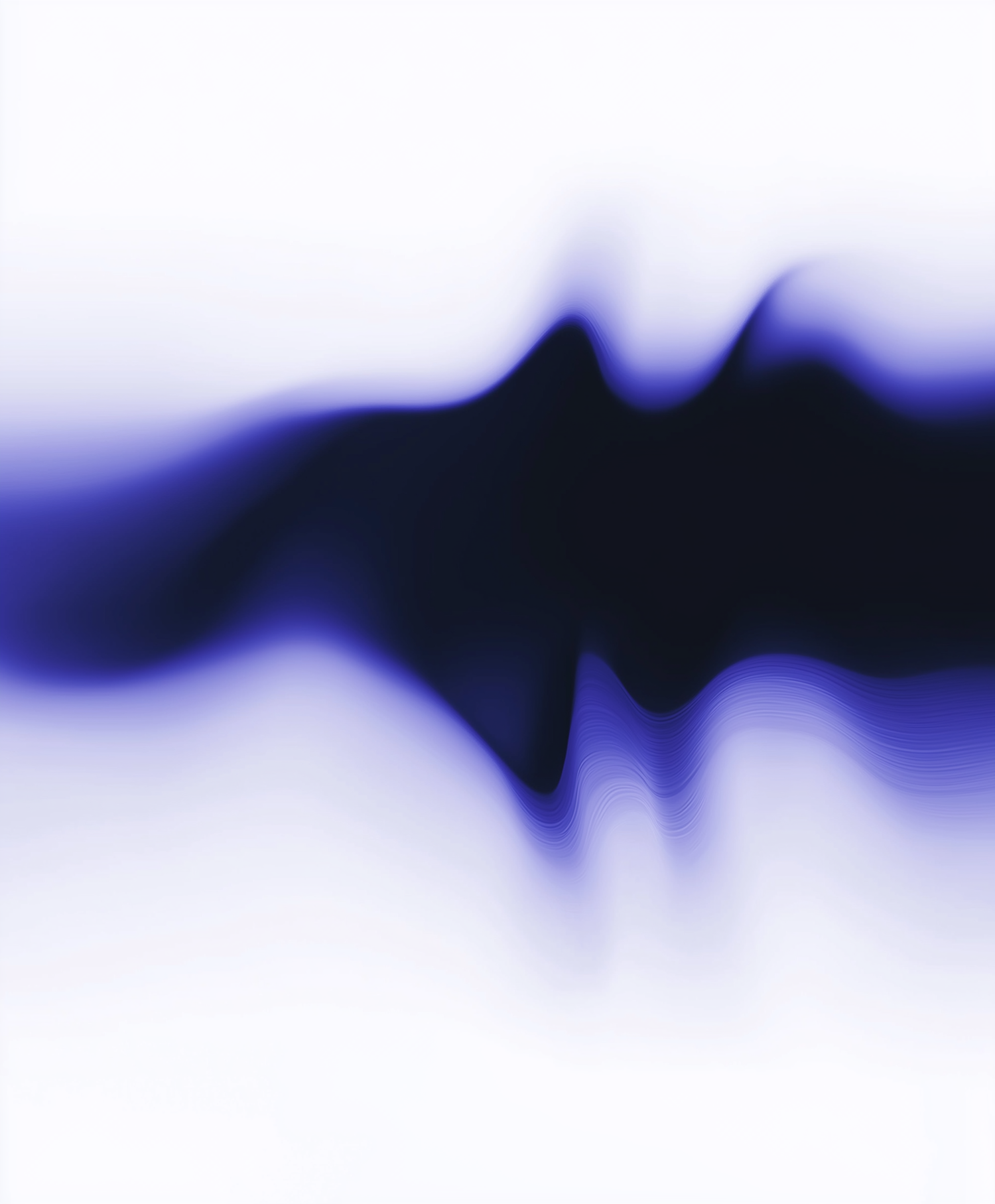 Abstract digital art with a dark wave-like shape on a blue to white gradient background, creating a fluid and serene effect.