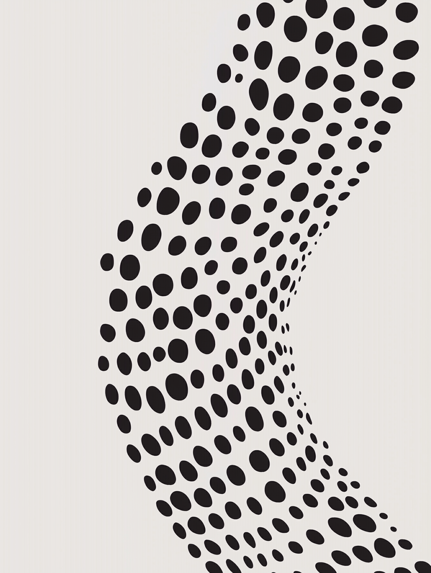 Abstract black dots form a wave-like pattern on a white background, creating a striking optical illusion with depth and movement.