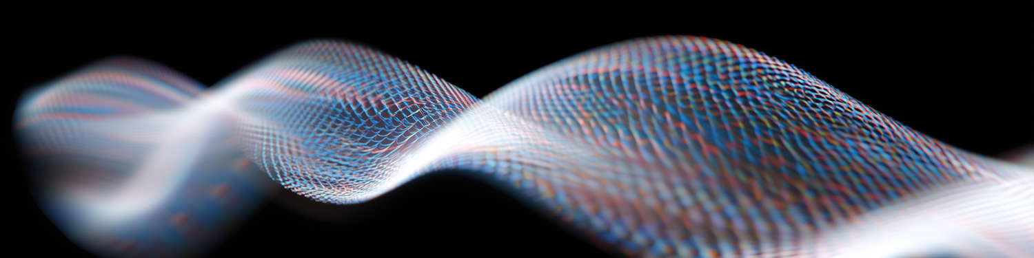 Abstract wave pattern with colorful grid on black background, creating a dynamic and futuristic visual effect.